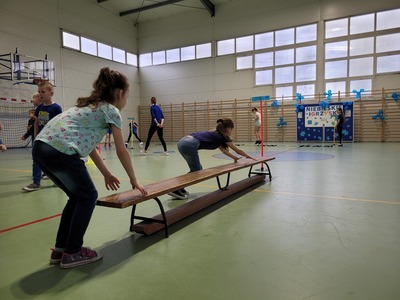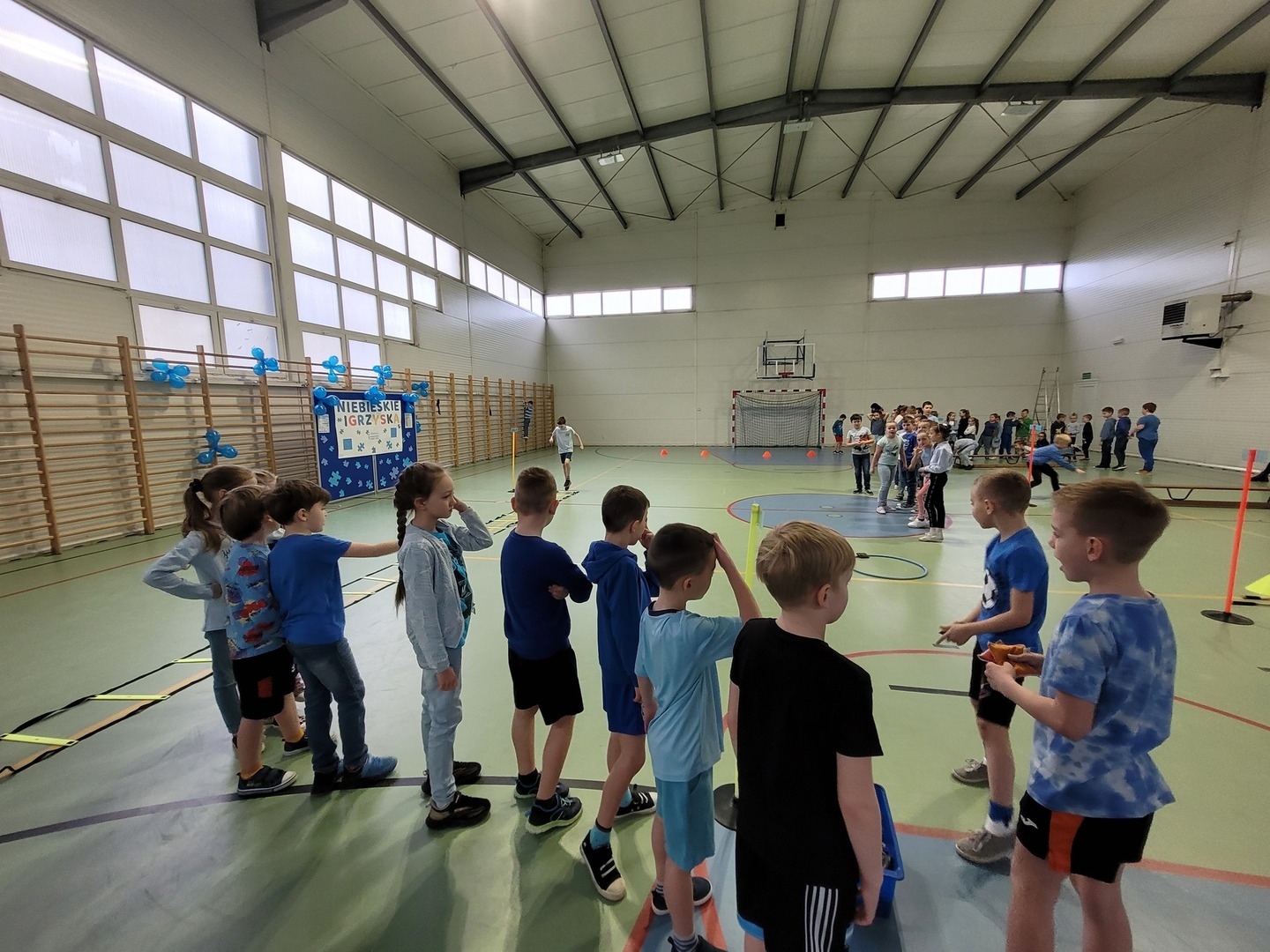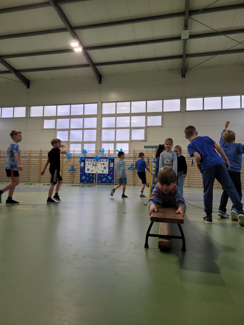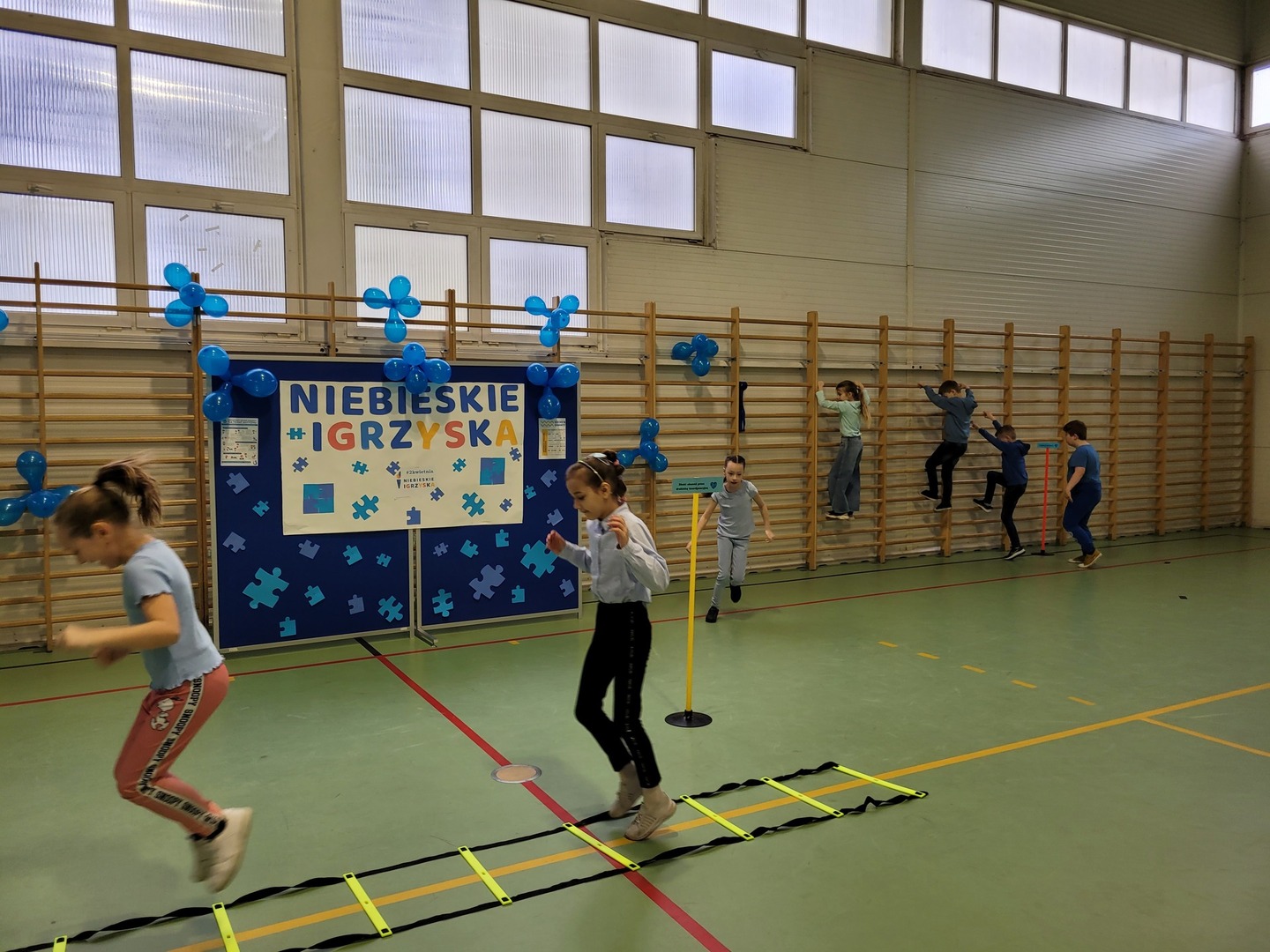 Niebieskie Igrzyska miały pokazać, że każdy może być sportowcem i każdy ma szansę osiągnąć sukces na miarę swoich możliwości. Dzieci z przedszkola, grupy "0" oraz klas I-III uczestniczyły w sportowo-integracyjnych ćwiczeniach sportowych. Natomiast uczniowie klas IV-VIII obejrzeli krótki film edukacyjny, który pozwolił zgłębić wiedzę nt. autyzmu, a następnie przystąpili do wykonania tematycznych plakatów informacyjnych.