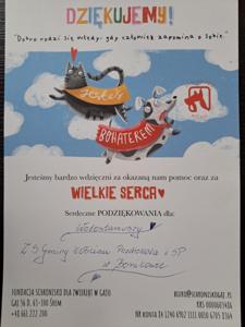 W dniu 24 listopada grupa uczniów i opiekun naszego Szkolnego Klubu Wolontariatu z rodzicami odwiedzili Schronisko dla bezdomnych zwierząt, którego opiekunem jest Fundacja Schroniska dla Zwierząt w Gaju. Przekazaliśmy zebraną przez uczniów w październiku karmę i dary dla psiaków.