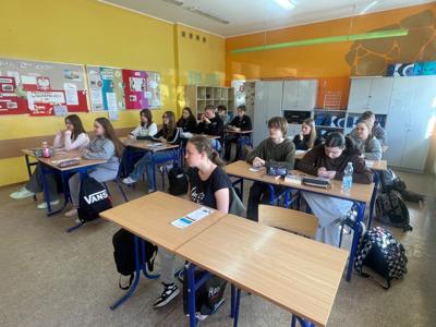Spotkanie uczniów klasy VIII z przedstawicielkami I LO im. Oskara Kolberga w Kościanie