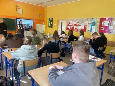 17 marca odbyło się kolejne spotkanie informacyjne z przedstawicielkami szkoły średniej. Podczas wydarzenia panie pedagog: Paulina Sadowska -Szymanowska, Agnieszka Michalewska z I Liceum Ogólnokształcącego im. Oskara Kolberga w Kościanie zapoznały uczniów się ofertą edukacyjną na przyszły rok szkolny oraz informacjami o szkole. Spotkanie było doskonałą okazją do zadawania pytań i uzyskania praktycznych informacji, które mogą ułatwić podjęcie decyzji o wyborze szkoły ponadpodstawowej.