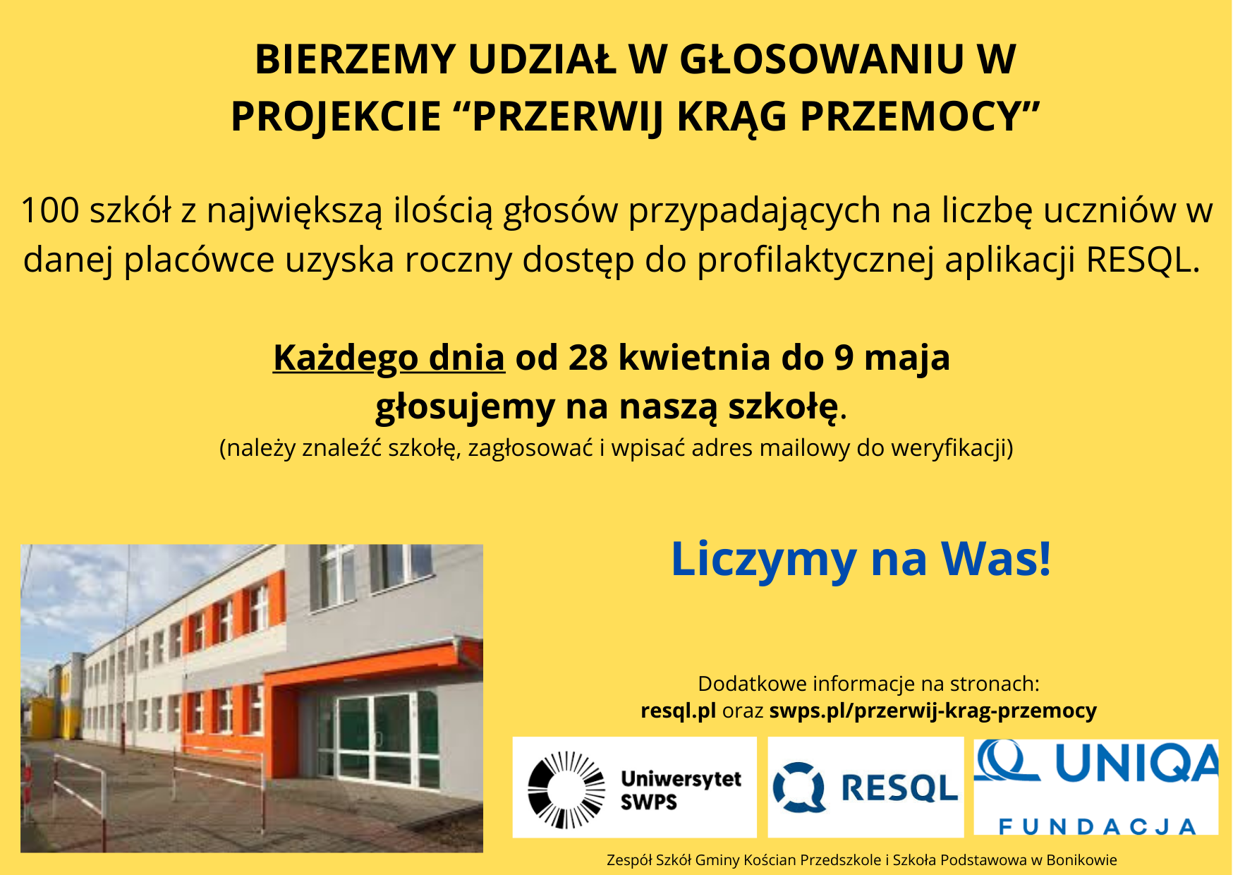 BIERZEMY UDZIAŁ W GŁOSOWANIU W PROJEKCIE "PRZERWIJ KRĄG PRZEMOCY"
