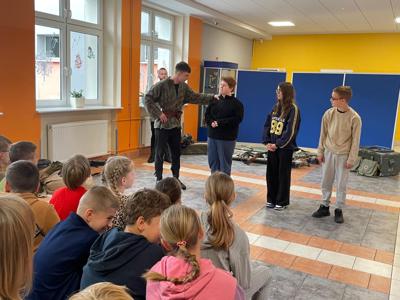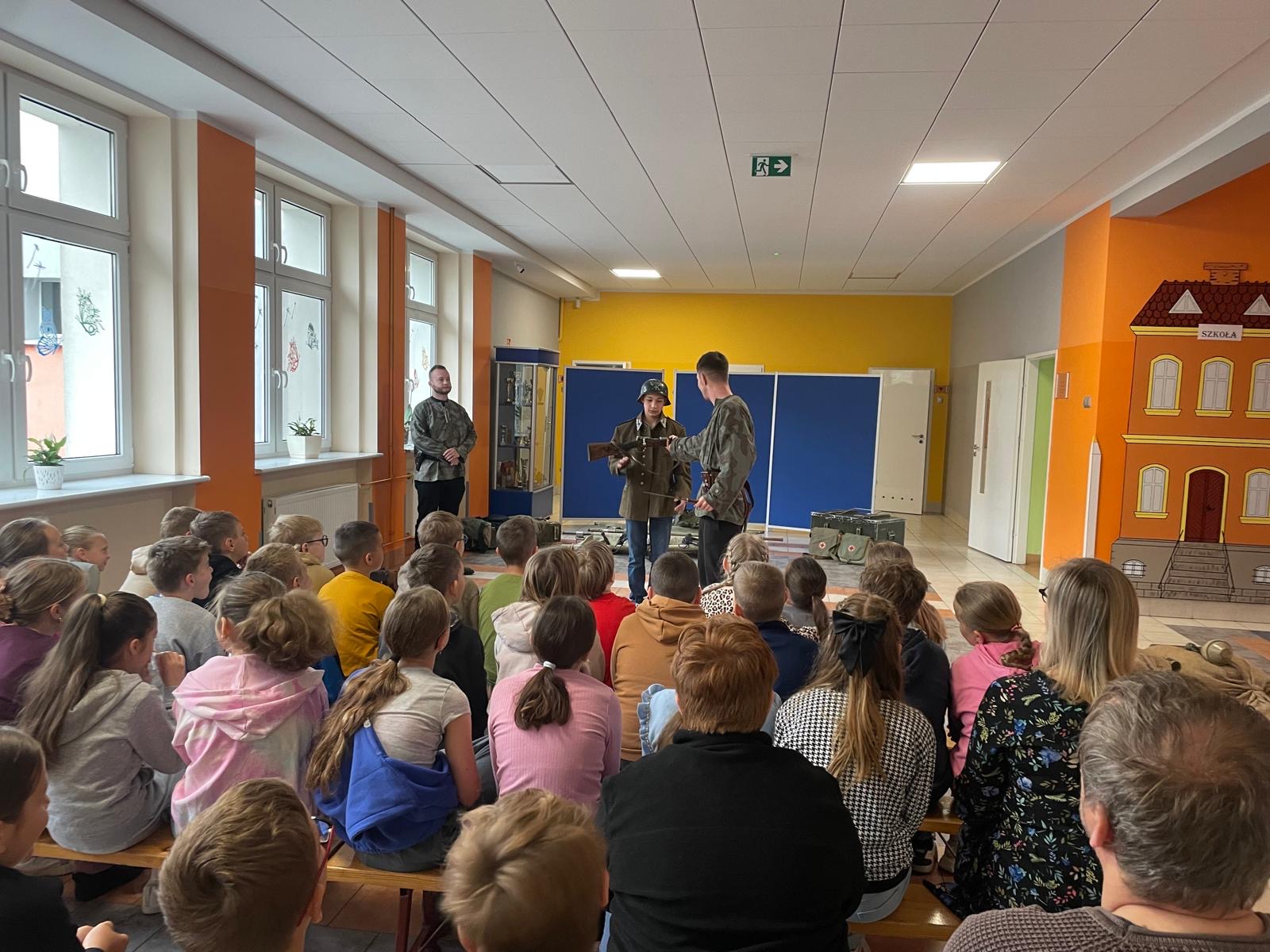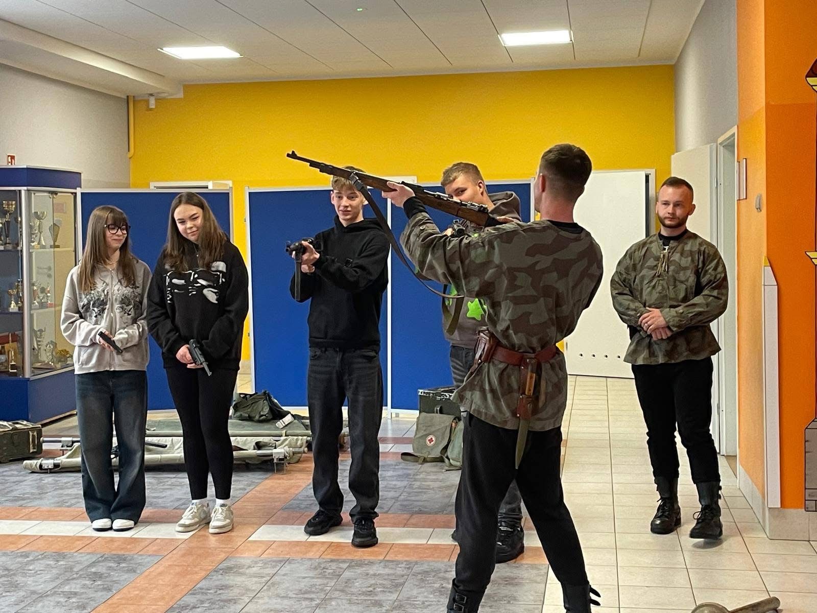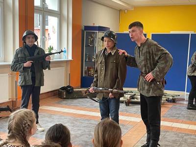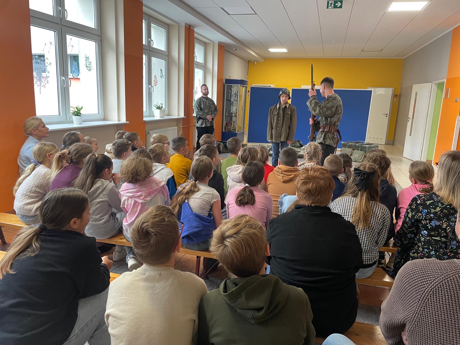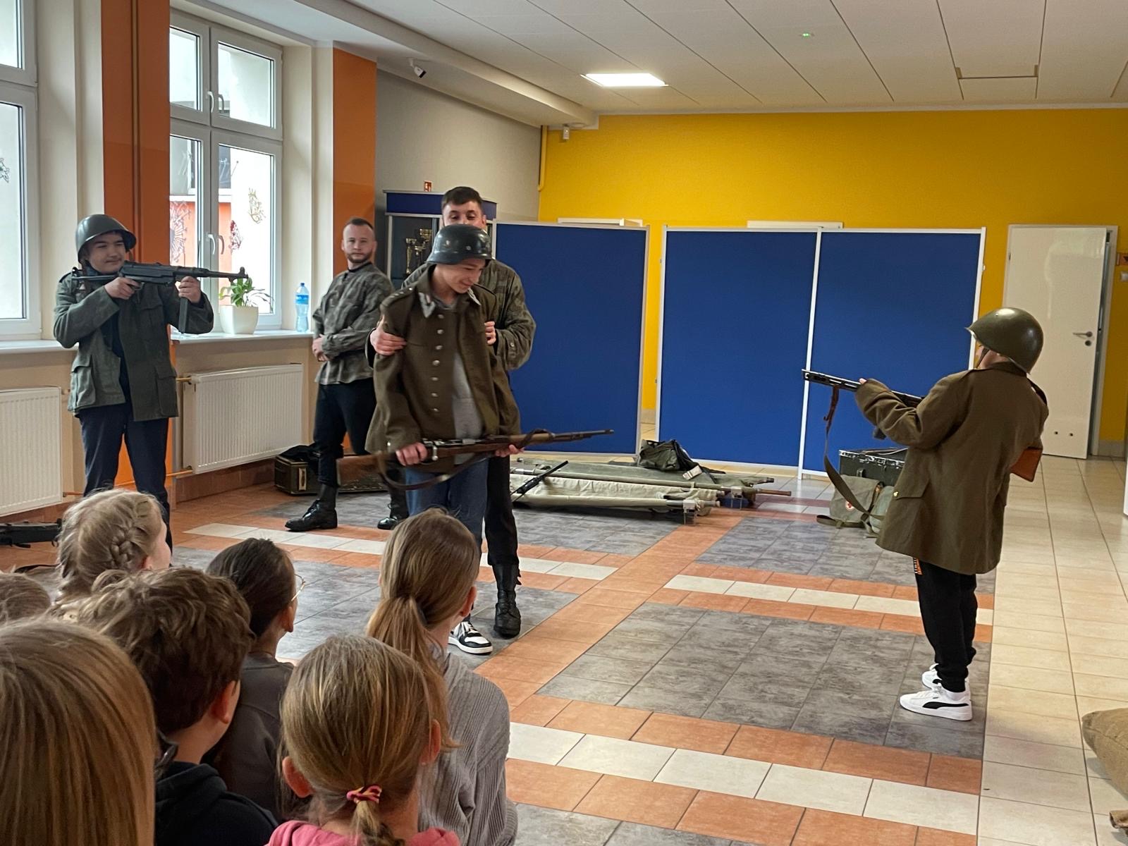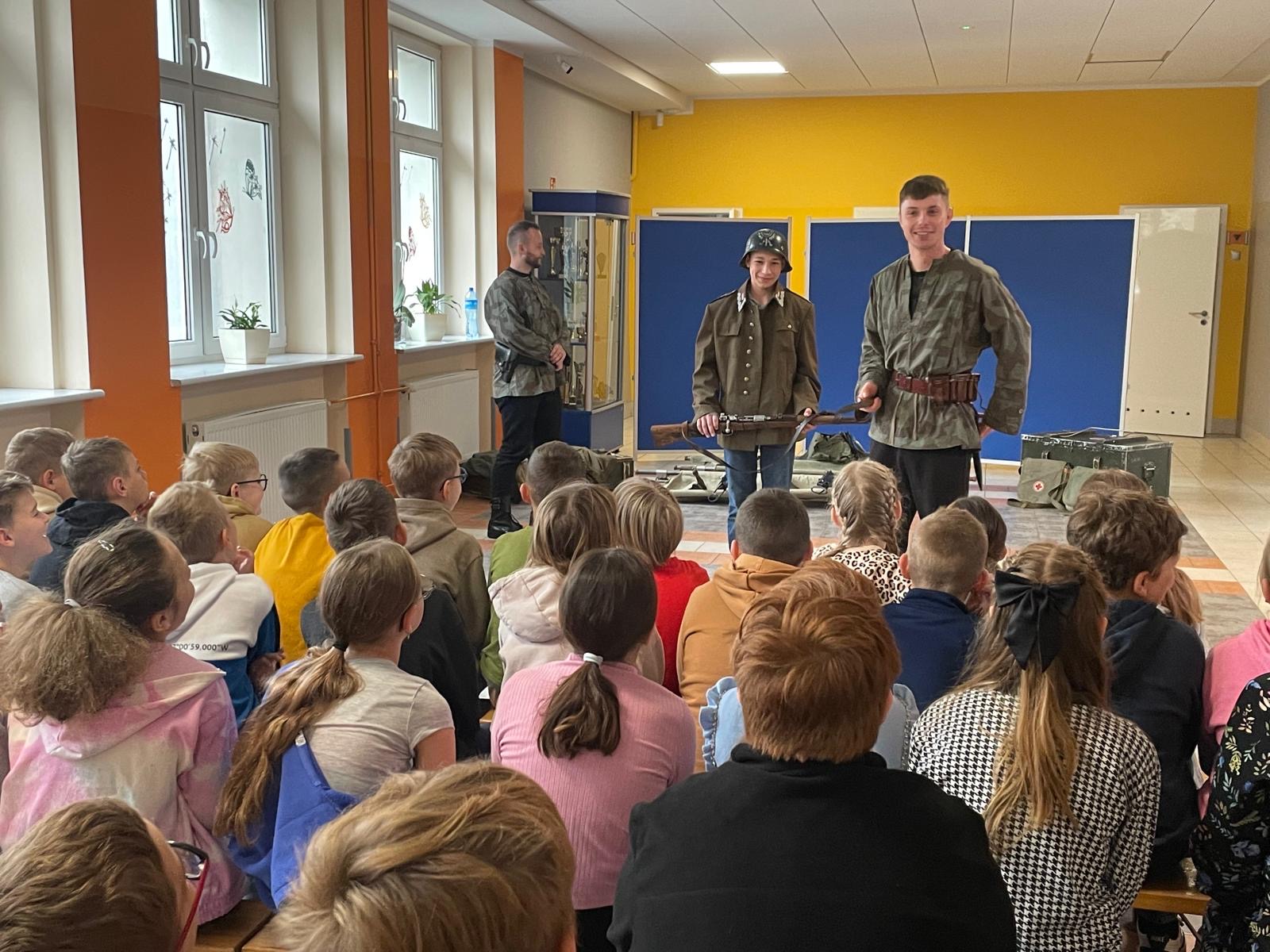 30 maja odwiedziła nas historyczna grupa Rekonstrukto, która zaprezentowała uczniom klas III-VIII lekcję historii o Powstaniu Warszawskim z 1944 roku. W trakcie unikatowej lekcji ukazane zostałe losy Polaków podczas II wojny światowej z ciekawymi prezentacjami strojów oraz broni. Uczniowie chętnie brali aktywny udział w pokazie udzielając prawidłowych odpowiedzi lub wykonując powierzone im zadania. Nie każdy ma okazję wcielić się w żołnierza, powstańca lub sanitariuszkę.