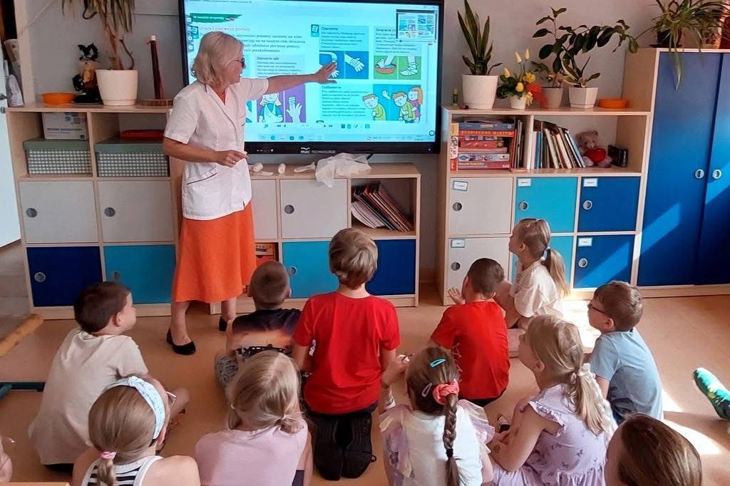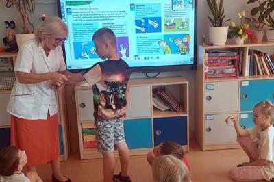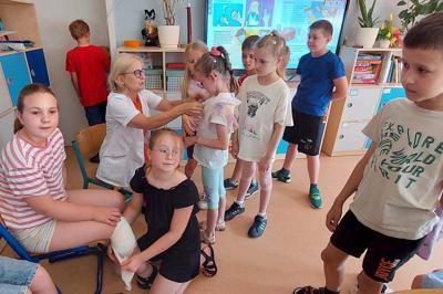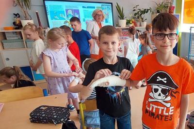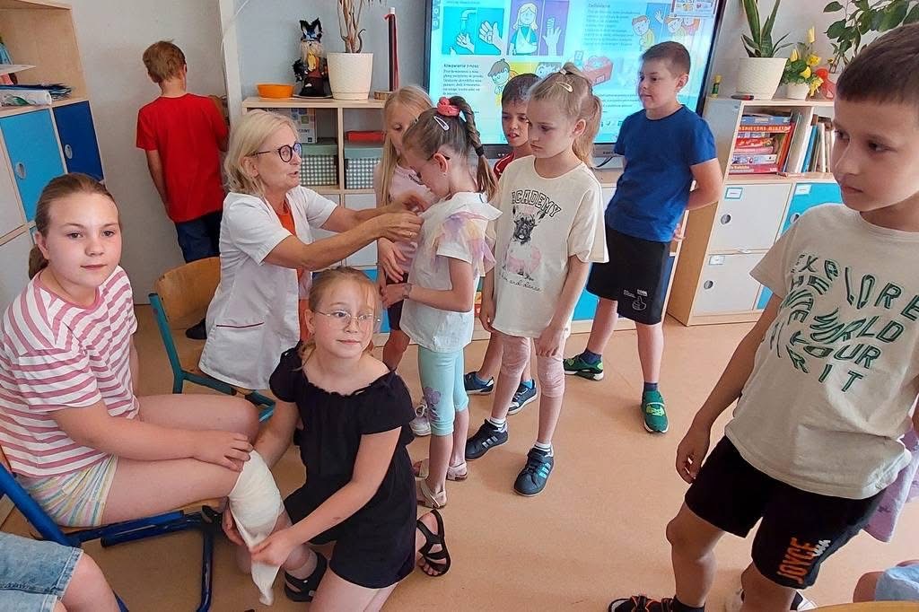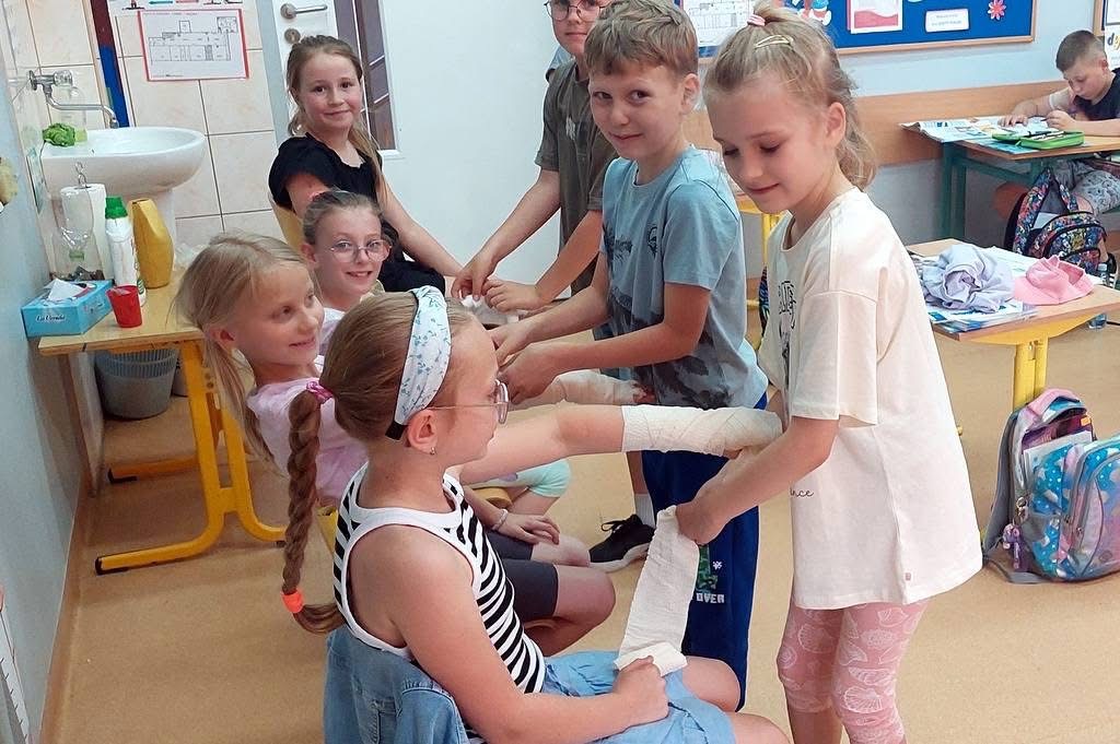 Uczniowie klasy drugiej, podczas zajęć z panią pielęgniarką Agatą Szwarc, wzięli udział w pokazie oraz ćwiczeniach praktycznych z udzielania pierwszej pomocy w wypadku pospolitych urazów i obrażeń. Dzieci nauczyły się bandażowania: dłoni, łokcia, kolana, skręconej nogi w kostce oraz zakładały chustę trójkątną. Uczyły się też postępowania w przypadku złamań, skaleczeń, oparzeń, użądleń, zadławienia oraz krwotoku z nosa. To były bardzo ciekawe zajęcia. Wszyscy uczniowie chętnie ćwiczyli na sobie udzielanie pierwszej pomocy. Pani Agacie dziękujemy za fachowe wskazówki.