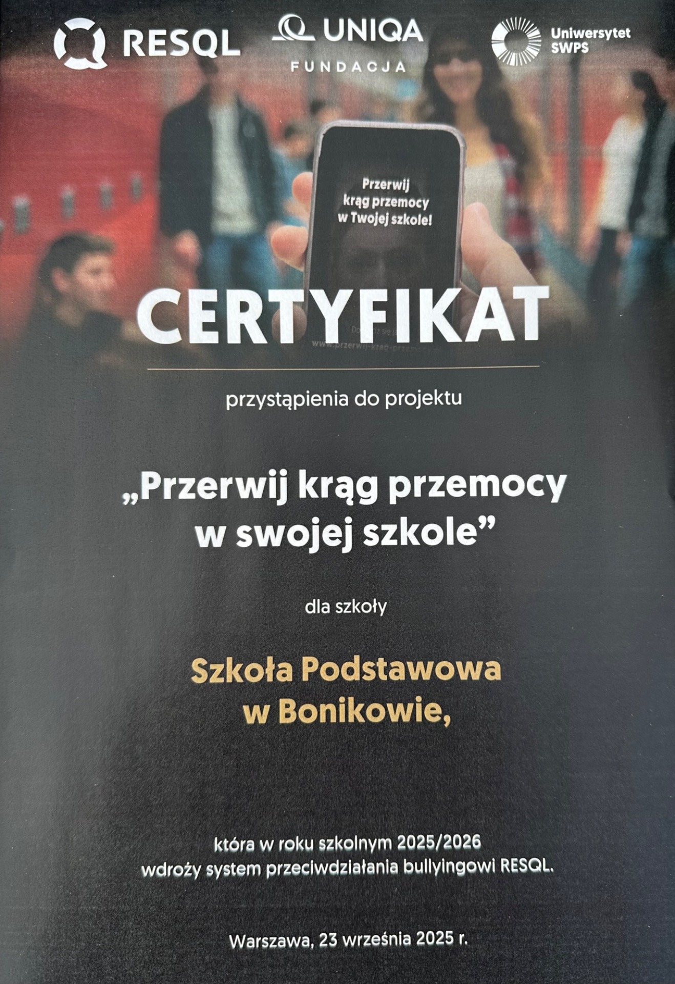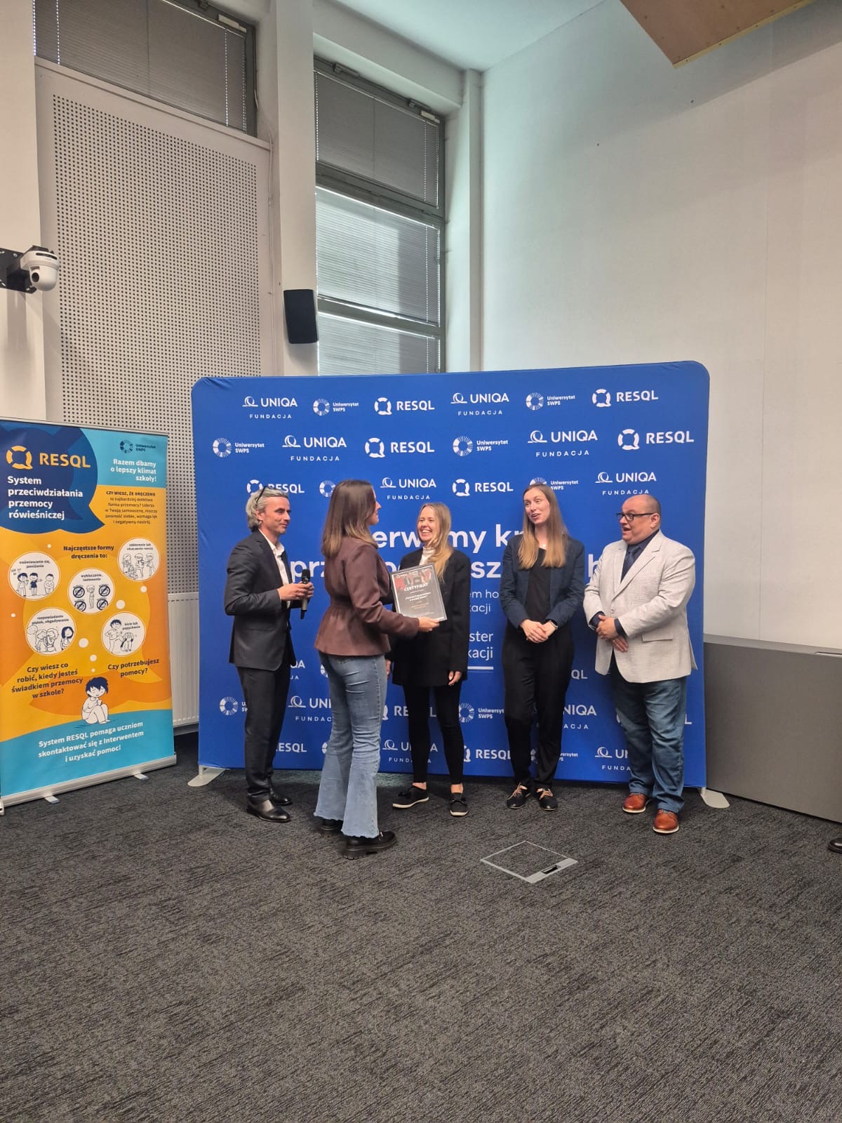 W dniu dzisiejszym przedstawicielki naszej szkoły uczestniczyły w finale drugiej edycji projektu „Przerwij krąg przemocy w szkole”, organizowanego przez Uniwersytet SWPS, Fundację UNIQA i RESQL w Warszawie.