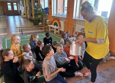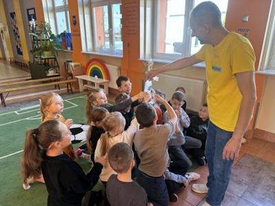 Podczas warsztatów uczniowie poznali właściwości różnych substancji, obserwowali reakcje chemiczne oraz uczyli się, jak z pozoru zwykłe składniki mogą zmieniać swoją formę i strukturę. Dzieci z ogromnym zainteresowaniem wykonywały eksperymenty, rozwijając przy tym ciekawość poznawczą, logiczne myślenie oraz umiejętność współpracy w grupie.