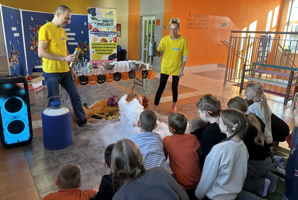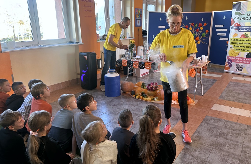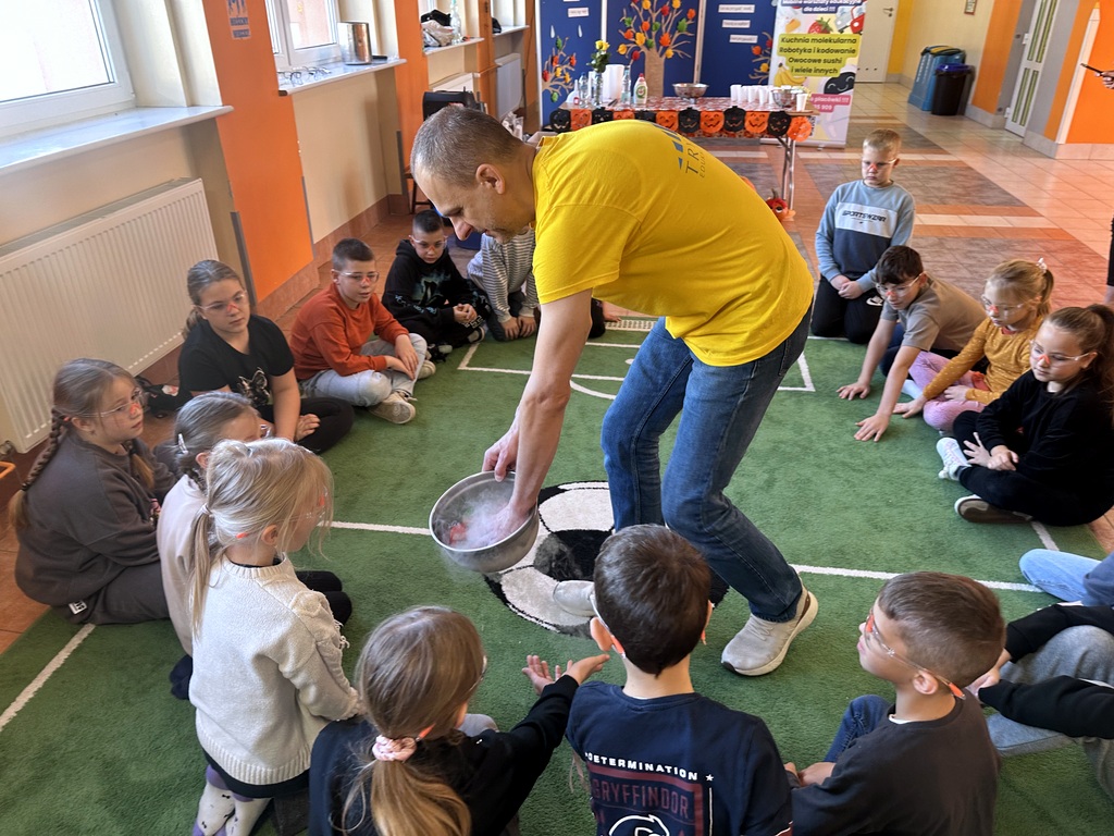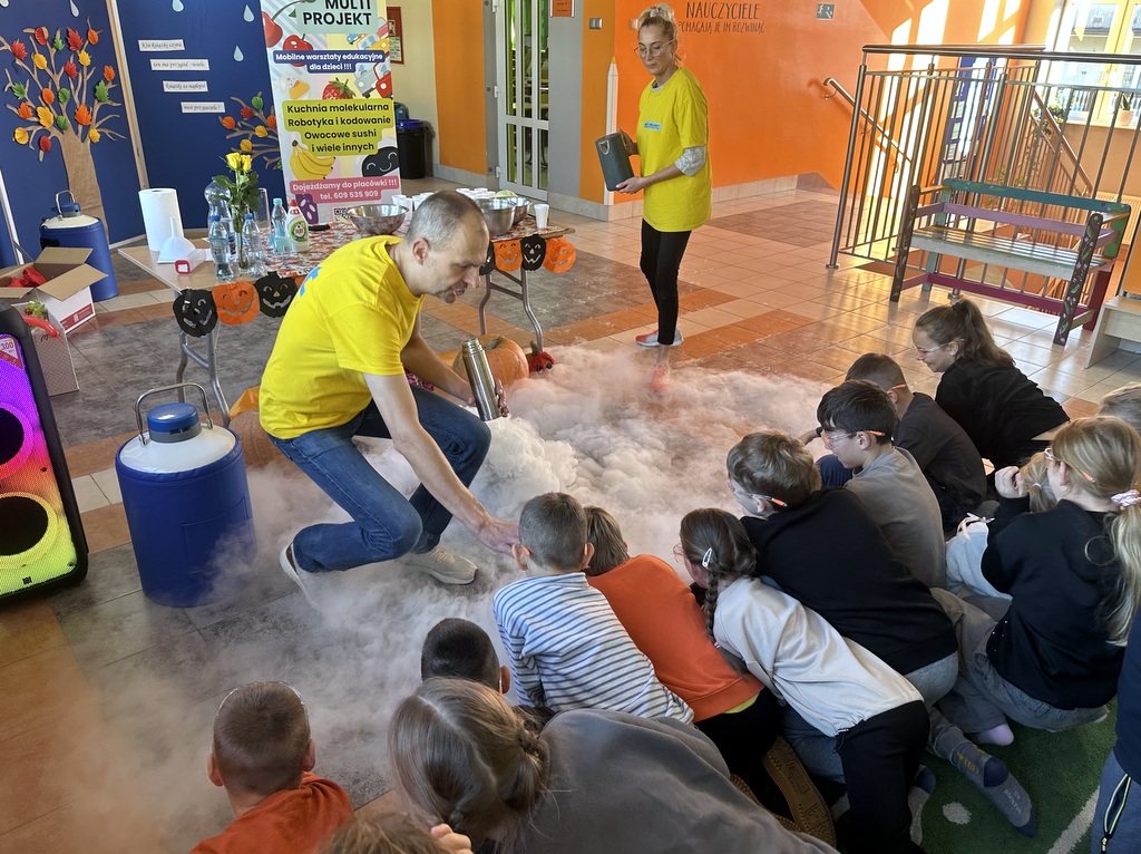 31 października uczniowie edukacji wczesnoszkolnej wzięli udział w niezwykle ciekawych warsztatach molekularnych. Zajęcia były okazją do odkrywania świata nauki poprzez doświadczenia i eksperymenty dostosowane do wieku dzieci.