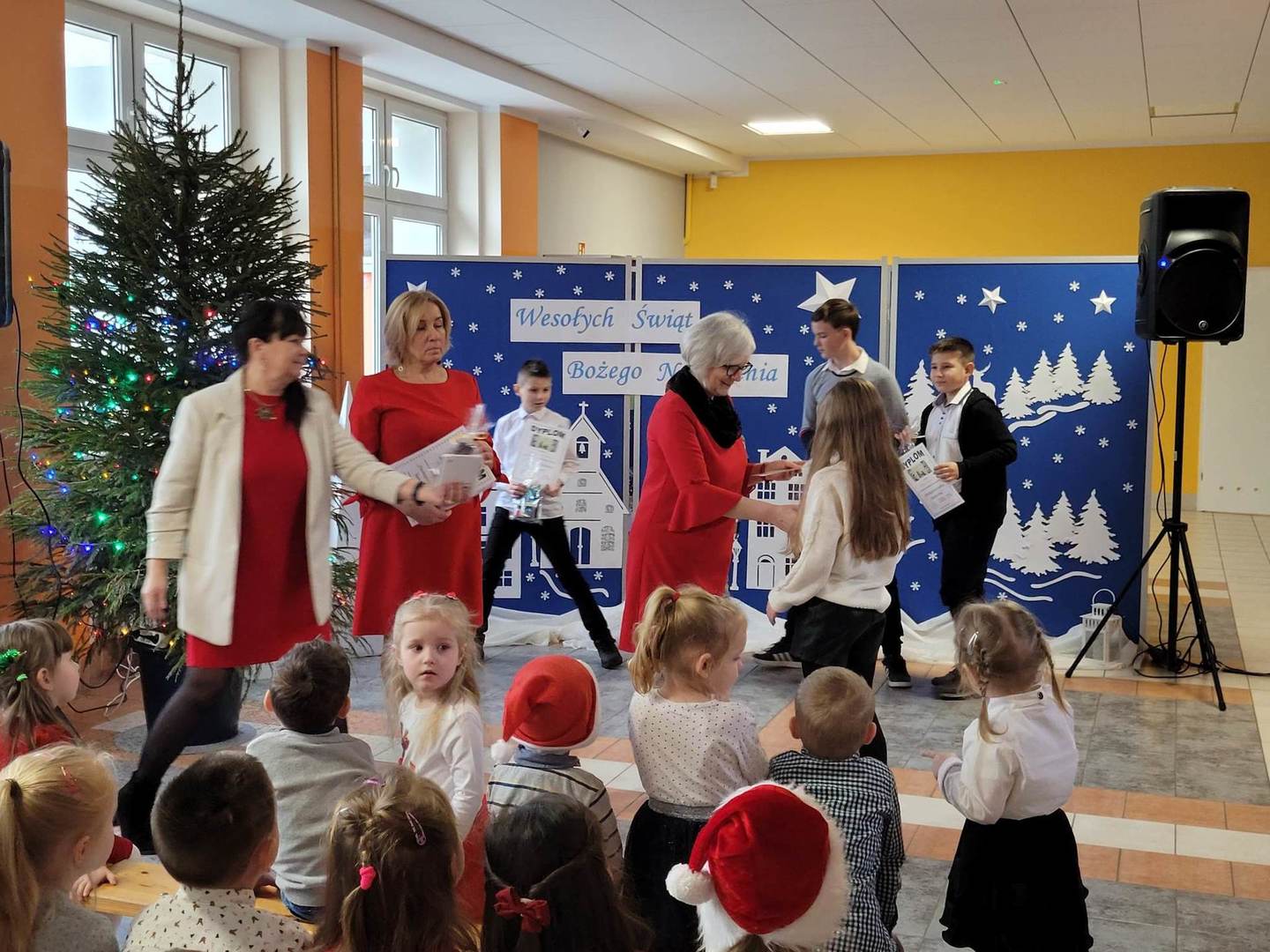 Celem konkursu była promocja zachowań proekologicznych, uświadamianie możliwości powtórnego wykorzystania zużytych materiałów (odpadów) oraz propagowanie idei recyklingu, a także rozwijanie uzdolnień plastycznych i kreatywnego myślenia w aspekcie recyklingu. Komisja konkursowa miała bardzo trudną pracę do wykonania. Spośród kartek świątecznych wykonanych przez uczestników musiała wybrać te „najpiękniejsze”, a wybór był niełatwy. Kreatywność, oryginalność i barwność prac przedstawiała wysoki poziom umiejętności plastycznych. Komisja przyznała uczestnikom konkursu nagrody i wyróżnienia, otrzymali je: Alicja Wojtaszek, Bartosz Kunert, Julia Grobelna, Szymon Urbański, Lena Kazubowska, Kacper Urbański, Szymon Wojtaszek, Zofia Dominiak, Patryk Kaczor, Zuzanna Łakoma, Dacjusz Matyja, Kacper Wojtkowiak. Wszystkim wykonawcom kartek gratulujemy pomysłowości, kreatywności – wykonaliście przepiękne kartki.