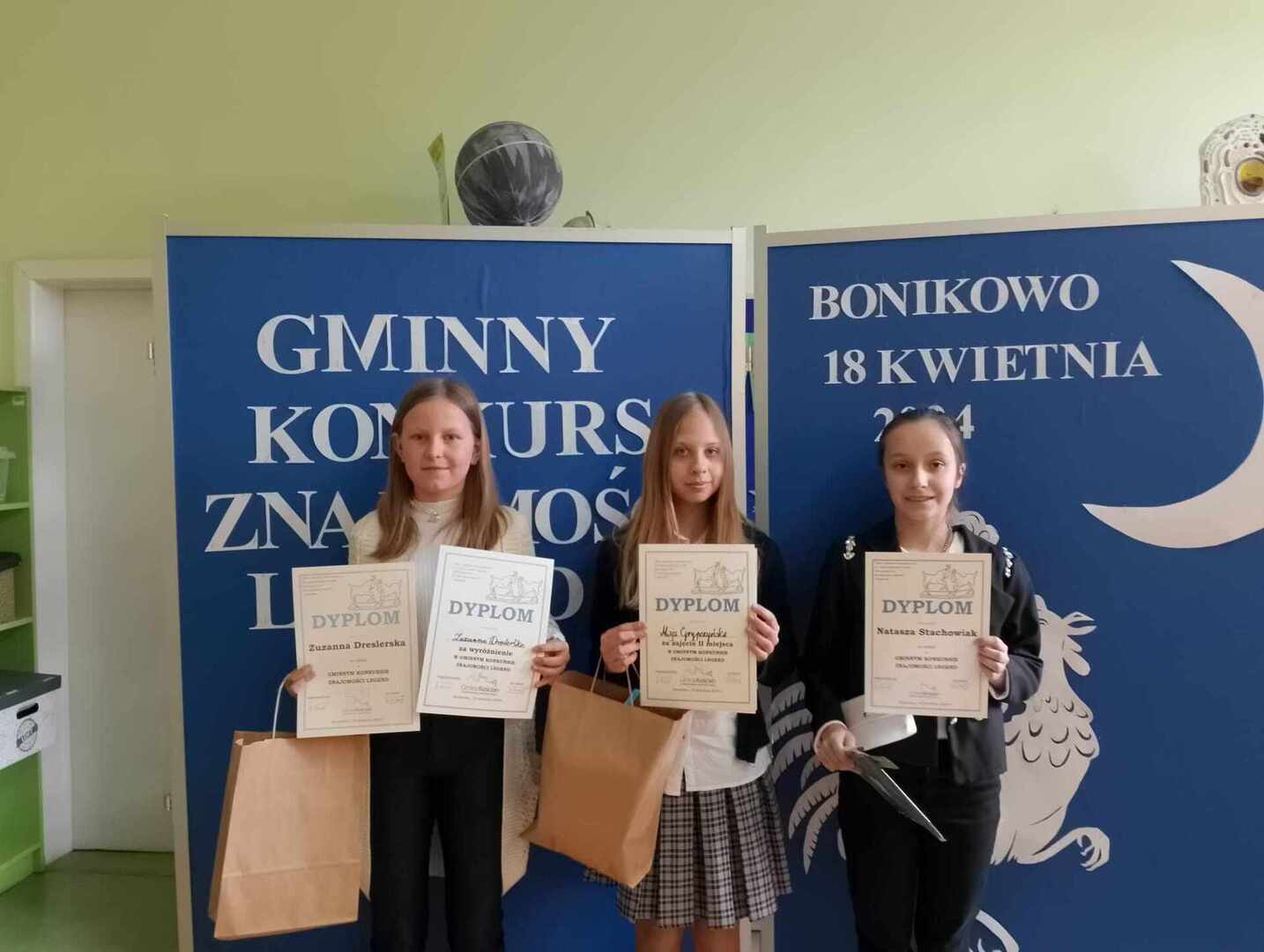 18 kwietnia w SP w Bonikowie odbyła się kolejna edycja Gminnego Konkursu Znajomości Legend. Wzięli w niej udział uczniowie ze szkół w Bonikowie, Racocie, Starych Oborzyskach i Starym Luboszu z klas IV i V. Laureatami konkursu zostali:
