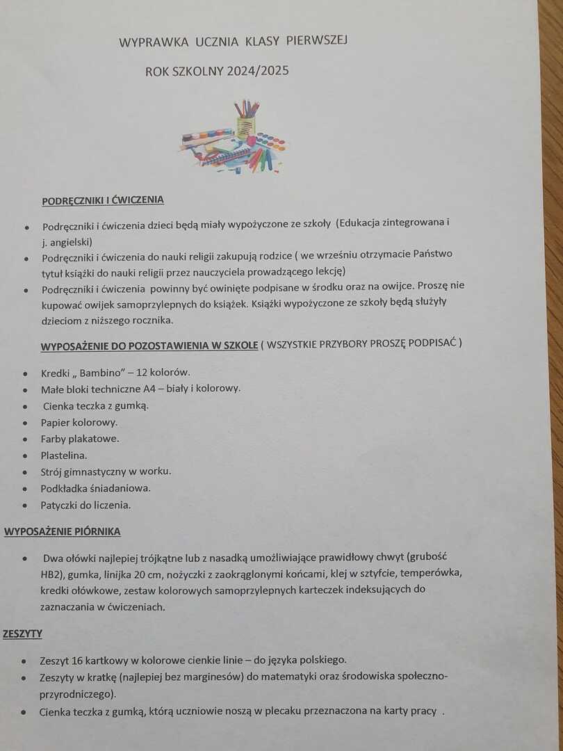 Komunikaty Zobacz również Rekrutacja do klasy I na rok szkolny 2025/2026 PILNE! - KARTA ZGŁOSZENIA DZIECKA DO ŚWIETLICY...ROZPOCZĘCIE ROKU SZKOLNEGO 2024/2025Wyprawka ucznia klasy pierwszej Zgłoszenie dziecka na dyżur letni do Przedszkola...Wyniki rekrutacji do klasy pierwszej Wyprawka ucznia klasy pierwszej Opublikowano: 07 sierpnia 2024 12:15 Kategoria: Komunikaty WydrukujDo góry Wyświetleń: 153