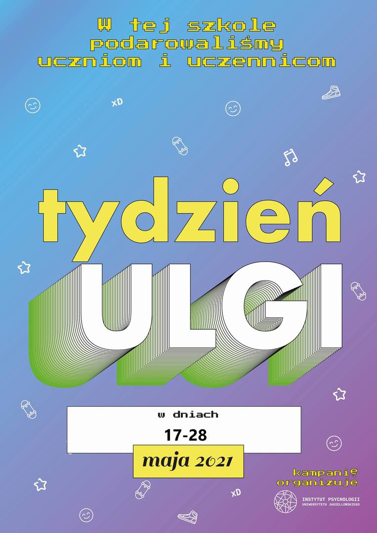 Nasza szkoła przyłączyła się do Ogólnopolskiej Kampanii „Tydzień ulgi” zapoczątkowanej przez Instytut Psychologii UJ. W myśl kampanii chcemy podarować naszym uczennicom i uczniom tydzień bez sprawdzianów, odpytywania i kartkówek. Wszystko po to aby obniżyć stres towarzyszący młodzieży na co dzień i zadbać o dobrostan psychiczny uczennic, uczniów, nauczycielek i nauczycieli po powrocie do szkoły.