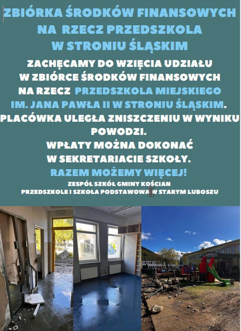 Dołączamy do akcji Zespołu Szkół w Starym Luboszu. Wpłaty przez Radę Rodziców (środki zebrane z okazji Dnia Edukacji Narodowej ) lub bezpośrednio w sekretariacie naszej szkoły. Liczymy na Państwa ofiarność.