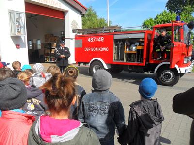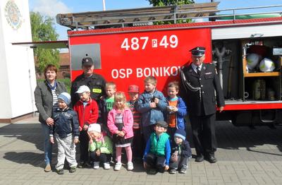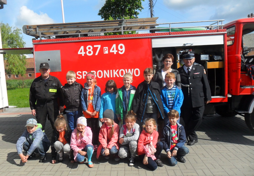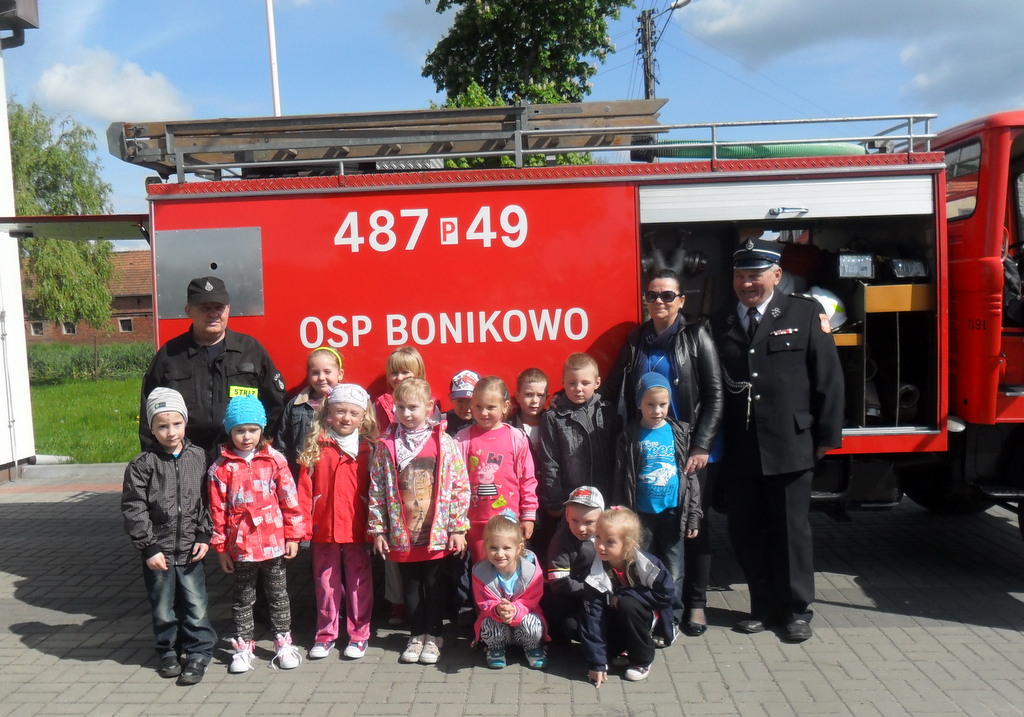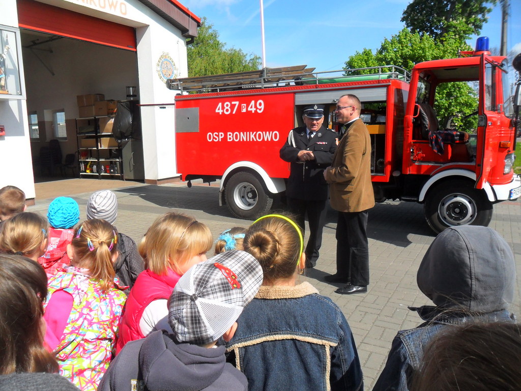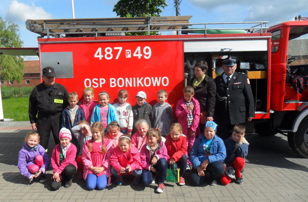 W związku z Dniem Strażaka, 5 maja 2014 r. dzieci z przedszkola i klas I - III z Zespołu Szkół w Bonikowie odwiedziły miejscową Ochotniczą Straż Pożarną. Przywitał ich komendant Tadeusz Walczak i druh Dariusz Woliński. Strażacy opowiedzieli dzieciom o swojej pracy oraz patronie świętym Florianie. Następnie zaprezentowali działanie sprzętu strażackiego.