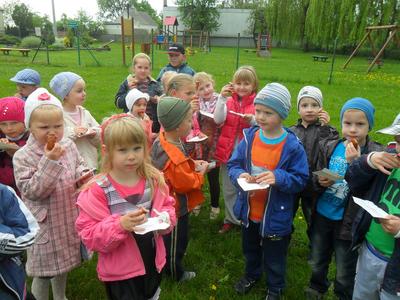 Po pokazach każde dziecko otrzymało grillowaną kiełbaskę i lizaka. Dzieci długo wspominały spotkanie ze strażakami.