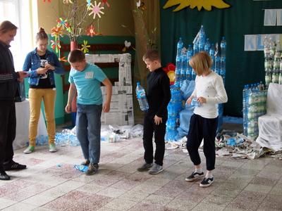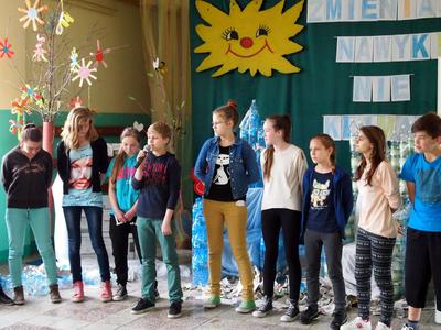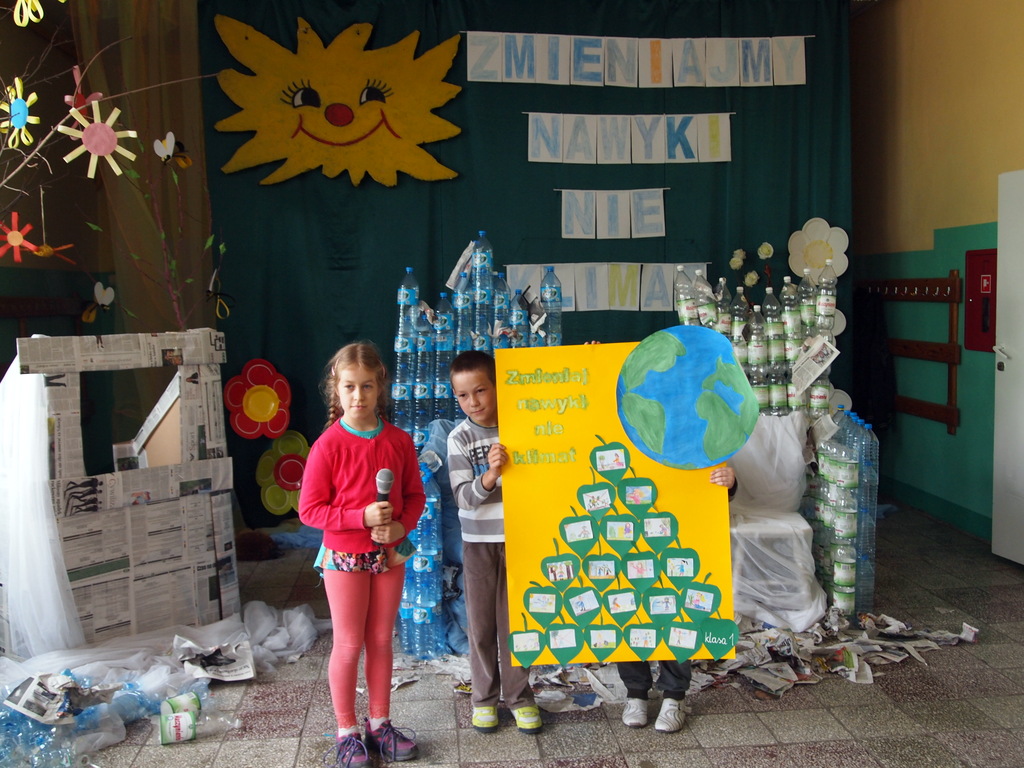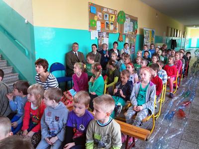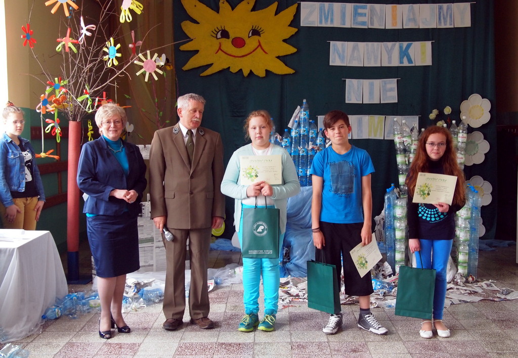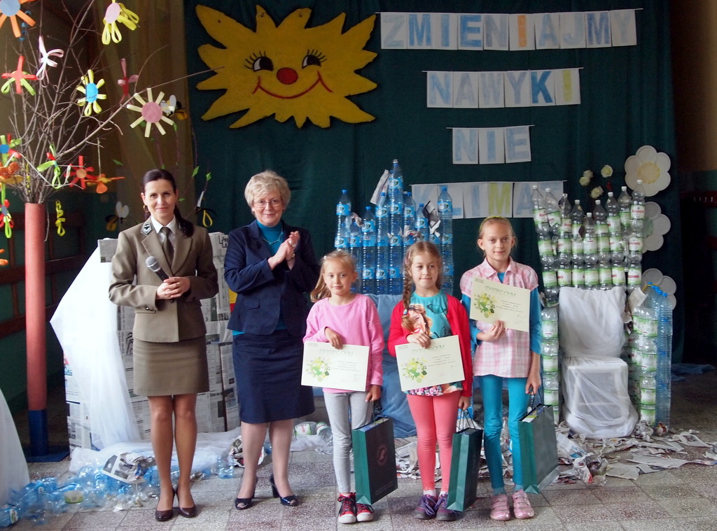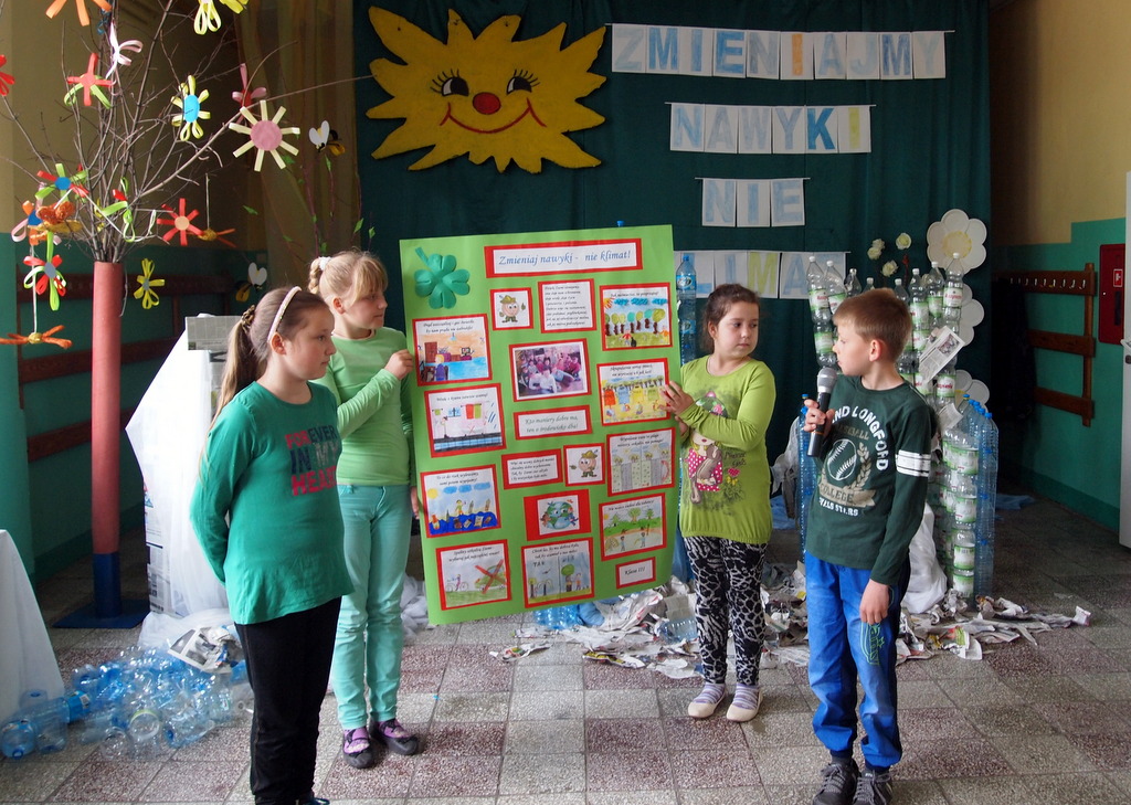 Uczniowie klas I – III brali udział w konkursach: najdłuższy wąż z butelek, zgniatanie go na czas oraz Zielona Piramida Marzeń. Uczniowie klas IV – VI wykonali plakaty „Drzewo dobrych nawyków”. Na obchodach Dnia Ziemi przedstawili przygotowane piosenki ekologiczne i list Ziemi do ludzi zawierający prośbę o zachowanie jej dla przyszłych pokoleń. Zmagania sportowe dla klas starszych polegały na zgniataniu butelek na czas oraz rzutach puszką do celu. W kategorii klas I- III zwyciężyła klasa III natomiast pierwsze miejsce wśród klas starszych zajęli piątoklasiści. Zwycięzcom nagrody wręczyli pani dyrektor Beata Kubacka oraz nasi goście pani Edyta Majorek i pan Marek Ptak.