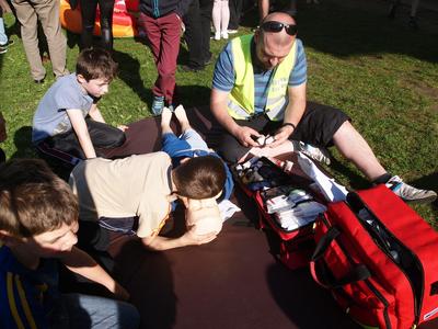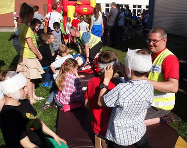 Podczas festynu można było ćwiczyć praktycznie sztuczne oddychanie na fantomach oraz pierwszą pomoc w nagłych wypadkach. Fachowych instrukcji udzielali ratownicy medyczni z Automobilklubu Wielkopolski panowie Tymoteusz Bączyk i Dawid Zys.