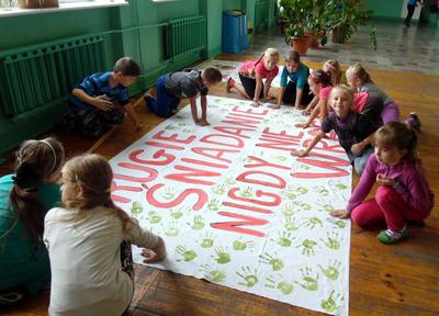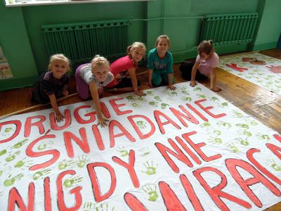 W DNIU 12.09.2014 PRZYSTĄPILIŚMY DO AKCJI KUBUSIA "PO PIERWSZE DRUGIE ŚNIADANIE". NA SZKOLE STWORZYLIŚMY ILUSTRACJĘ MANIFESTU, A NASZE HASŁO TO: DRUGIE ŚNIADANIE NIGDY NIE WRACA. NMM