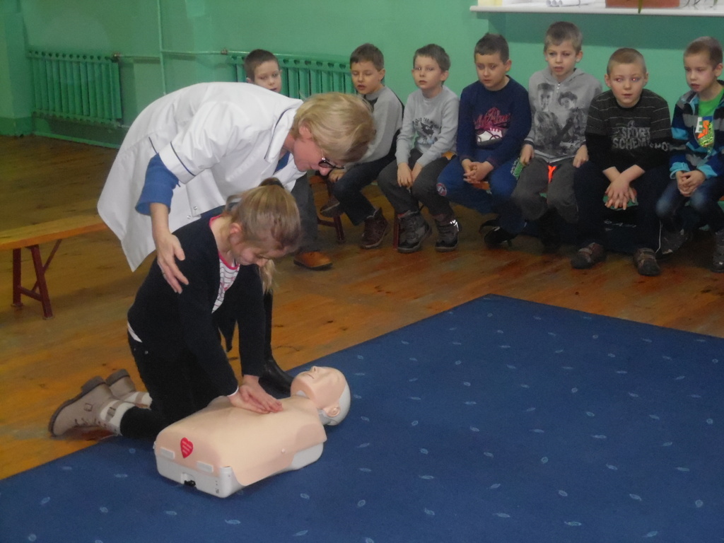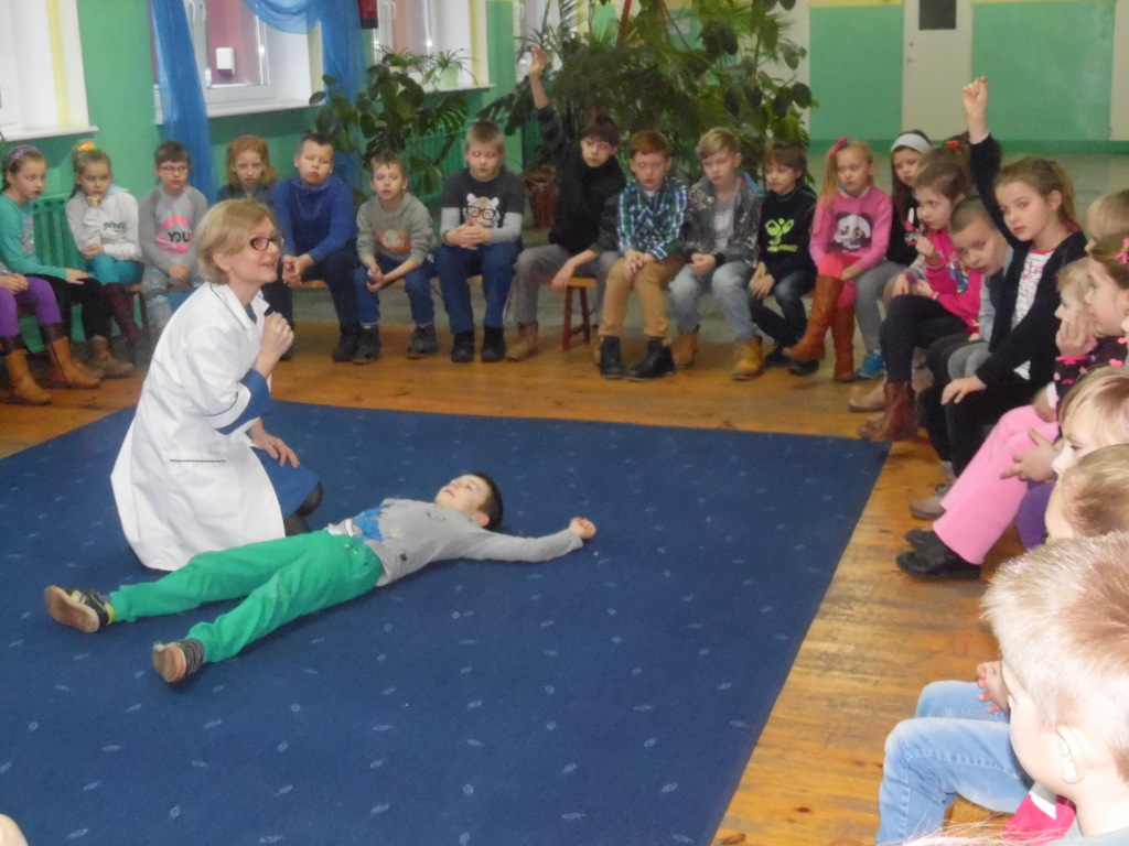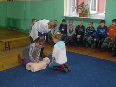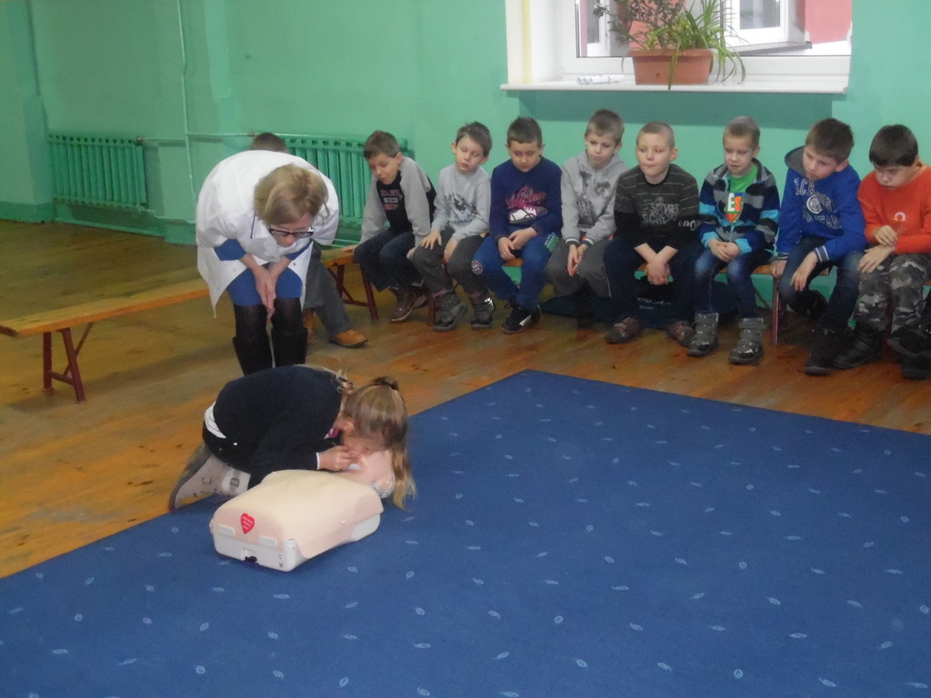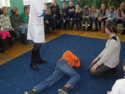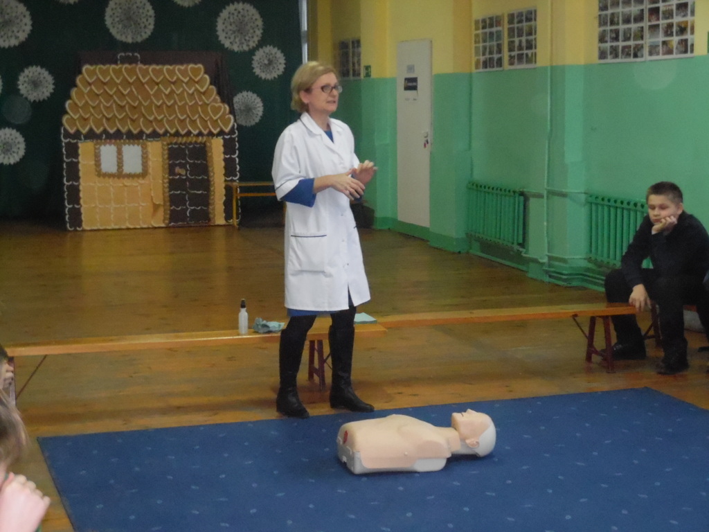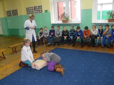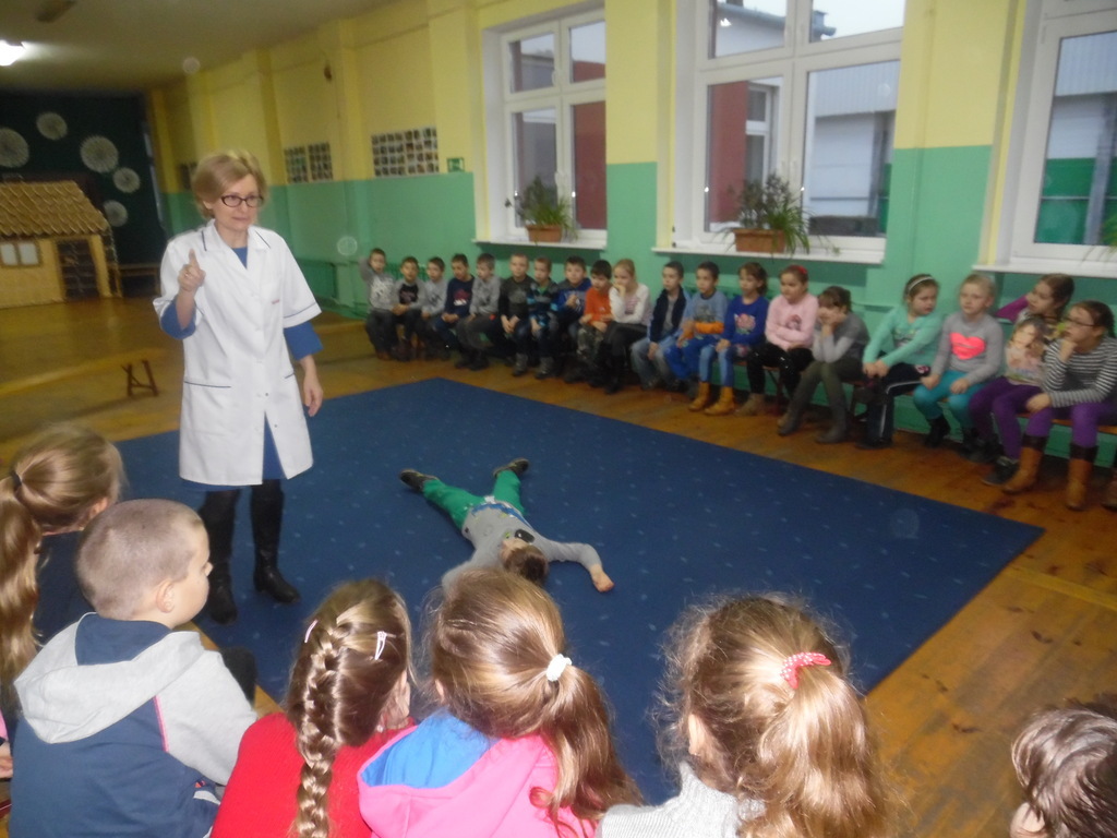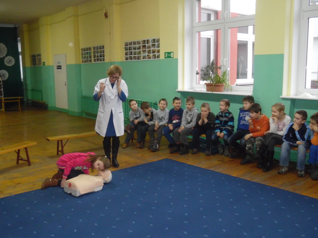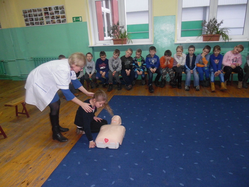 Dnia 21 stycznia br. w ramach konkursu „ BEZPIECZNA SZKOŁA, BEZPIECZNY UCZEŃ” odbyło się szkolenie z pierwszej pomocy przedmedycznej, które przeprowadziła pani pielęgniarka Agata Szwarc. Podczas zajęć uczniowie, podzieleni na dwie grupy wiekowe – kl. I – III i kl. IV - VI, mieli okazję obserwować, w jaki sposób należy się zachować w nagłych wypadkach oraz jak udzielić pierwszej pomocy osobie poszkodowanej. Chętni uczniowie przystąpili również do ćwiczeń praktycznych z wykorzystaniem fantoma.