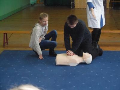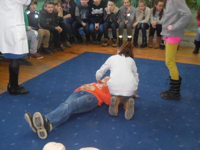 Na zakończenie szkolenia przedstawiciele każdej klasy otrzymali „Zasady udzielania pierwszej pomocy przedmedycznej”, które zostały zawieszone na klasowych gazetkach.