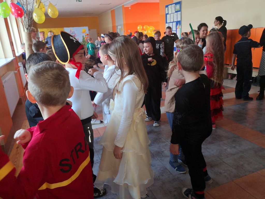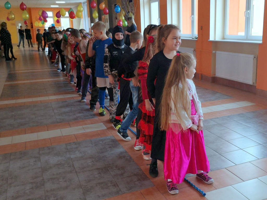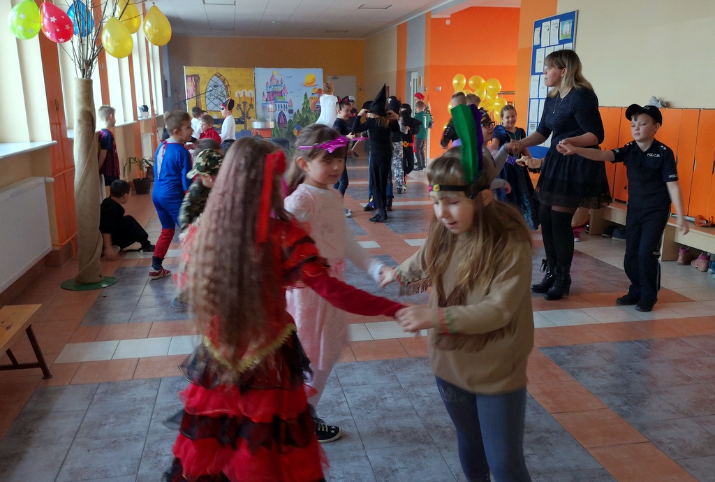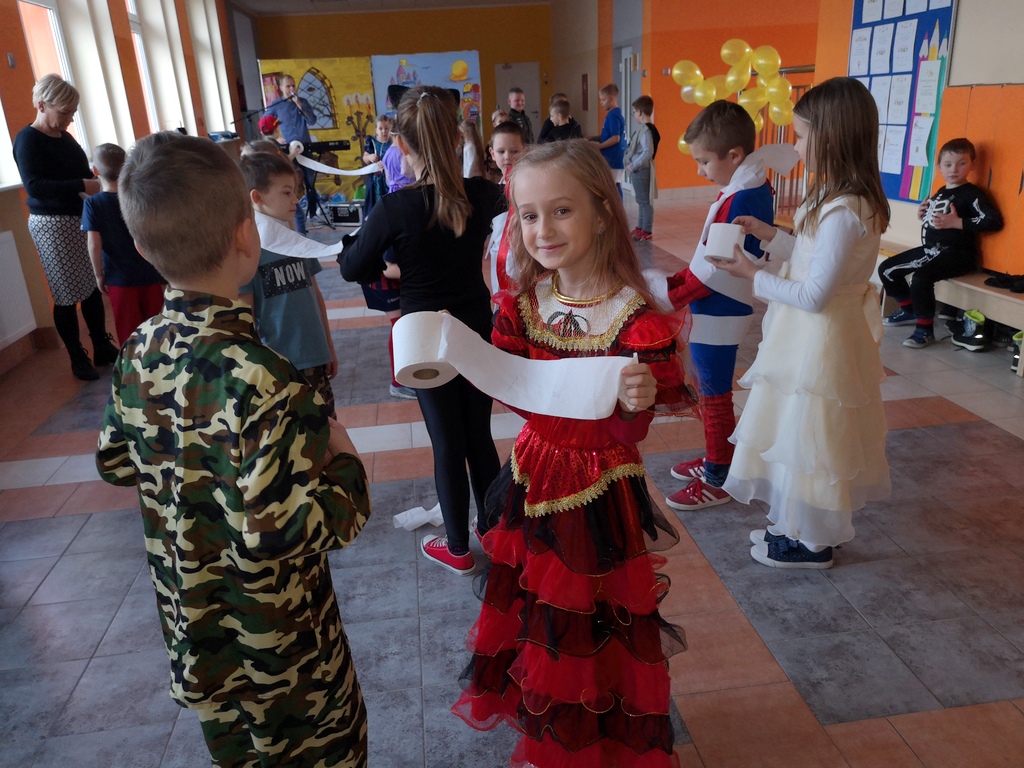 W piątek, 11 stycznia 2019 roku, w naszej szkole odbył się „Balik karnawałowy" dla uczniów z klas I – III. Podczas wspólnej zabawy korytarz szkolny wypełniły dzieci przebrane w barwne i pomysłowe stroje karnawałowe. Wspólne zabawy i pląsy odbywały się w rytmie tanecznych hitów. Do tańców zachęcał pan wodzirej, który świetnie zabawiał wszystkie dzieci. Atmosfera na balu sprzyjała zabawie, było miło i radośnie. Zadowolone i zmęczone dzieci po zakończeniu zabawy wspólnie uczestniczyły w poczęstunku zorganizowanym przez rodziców.