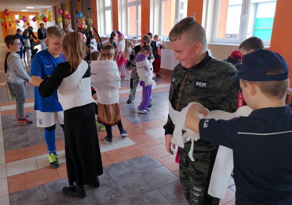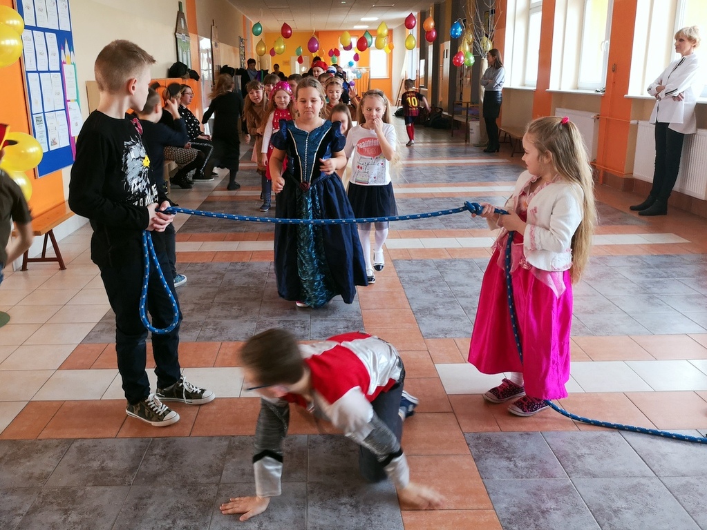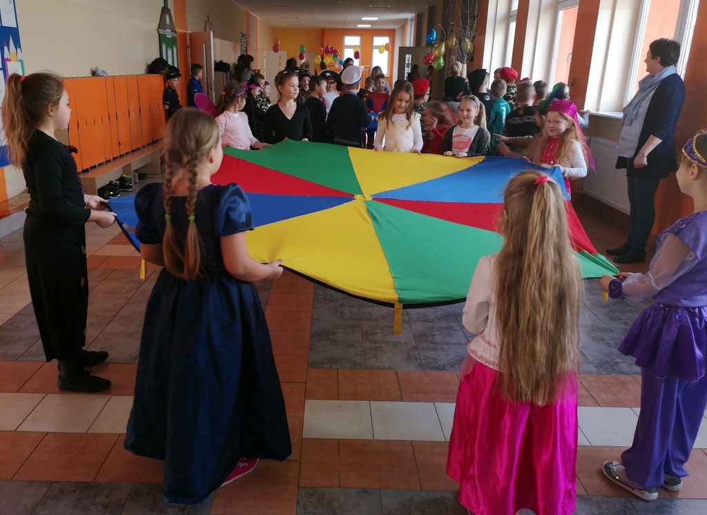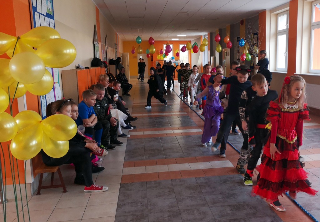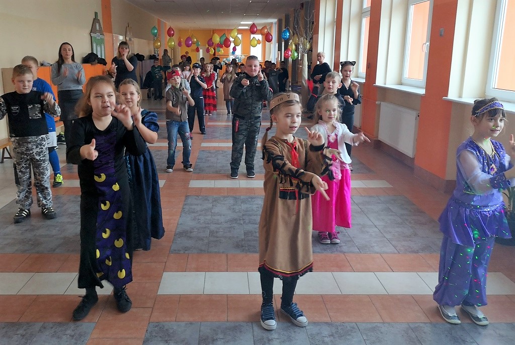 W piątek, 11 stycznia 2019 roku, w naszej szkole odbył się „Balik karnawałowy" dla uczniów z klas I – III. Podczas wspólnej zabawy korytarz szkolny wypełniły dzieci przebrane w barwne i pomysłowe stroje karnawałowe. Wspólne zabawy i pląsy odbywały się w rytmie tanecznych hitów. Do tańców zachęcał pan wodzirej, który świetnie zabawiał wszystkie dzieci. Atmosfera na balu sprzyjała zabawie, było miło i radośnie. Zadowolone i zmęczone dzieci po zakończeniu zabawy wspólnie uczestniczyły w poczęstunku zorganizowanym przez rodziców.