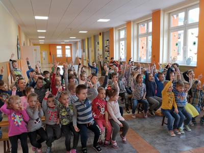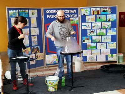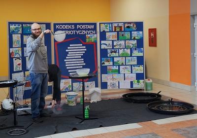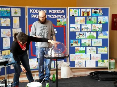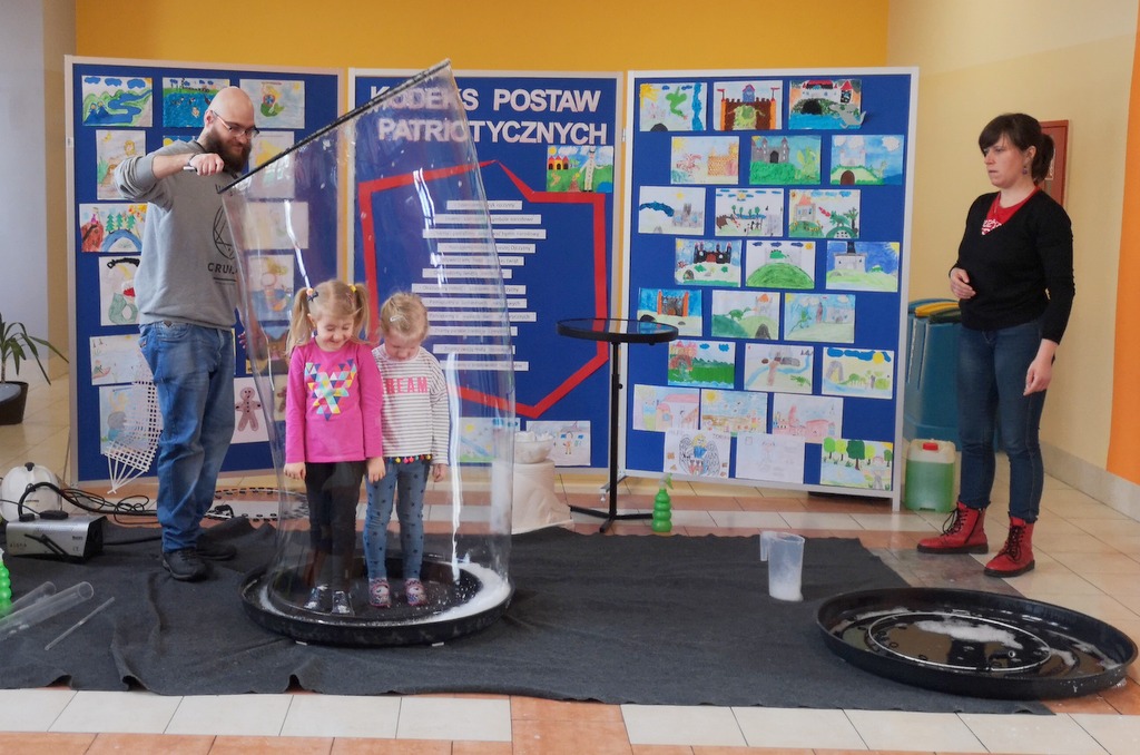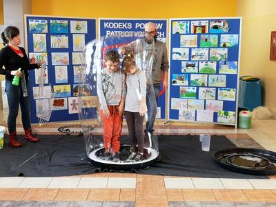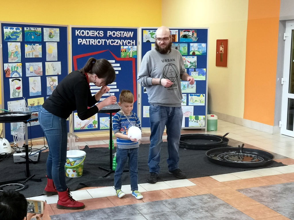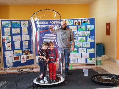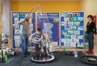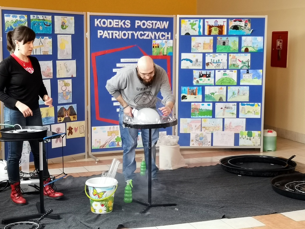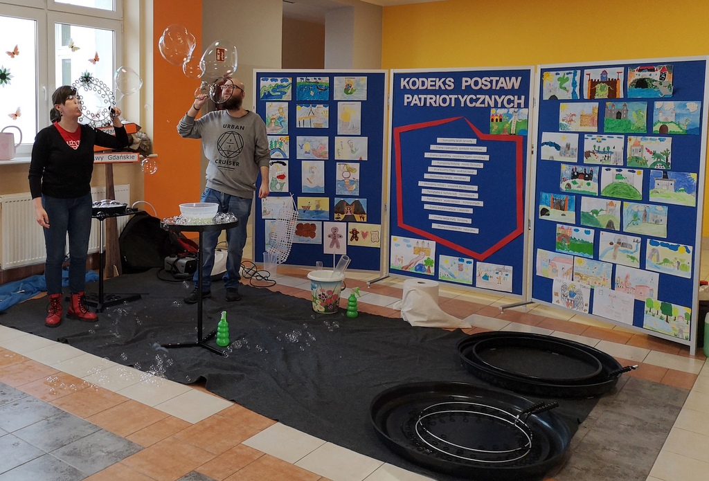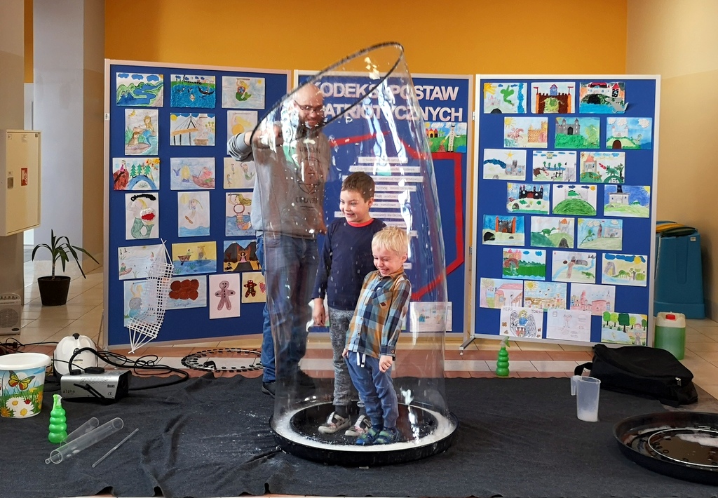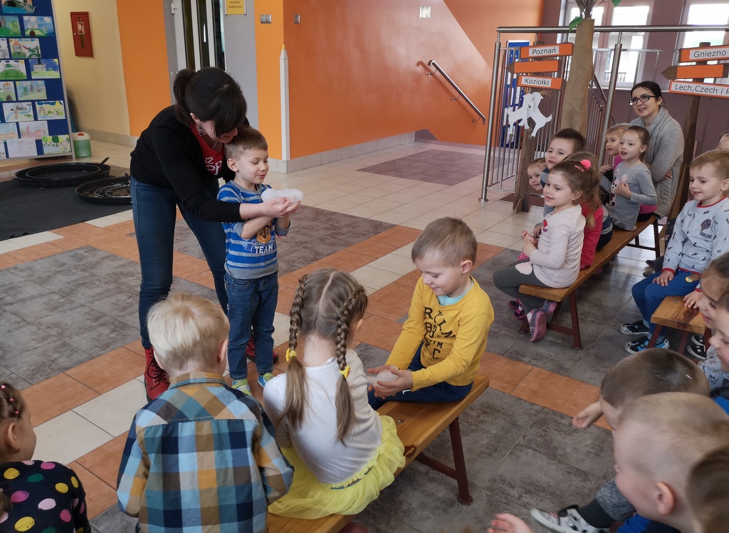 W poniedziałek 4 marca br. odbył się pokaz pt.” Bańki mydlane”, w wykonaniu Agencji Artystycznej Bulle z Gniezna. Przedszkolakom oraz uczniom z klas I – III zostały zaprezentowane bańki różnych rozmiarów i kolorów. Dzieci chętnie występowały w roli pomocników p. Magdy i p. Wojtka. Największą atrakcją była możliwość zamknięcia w bańce mydlanej każdego z uczestników spotkania.