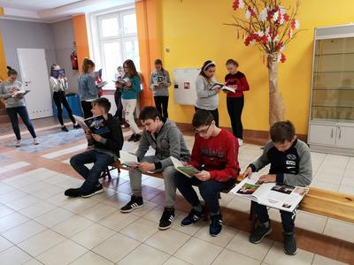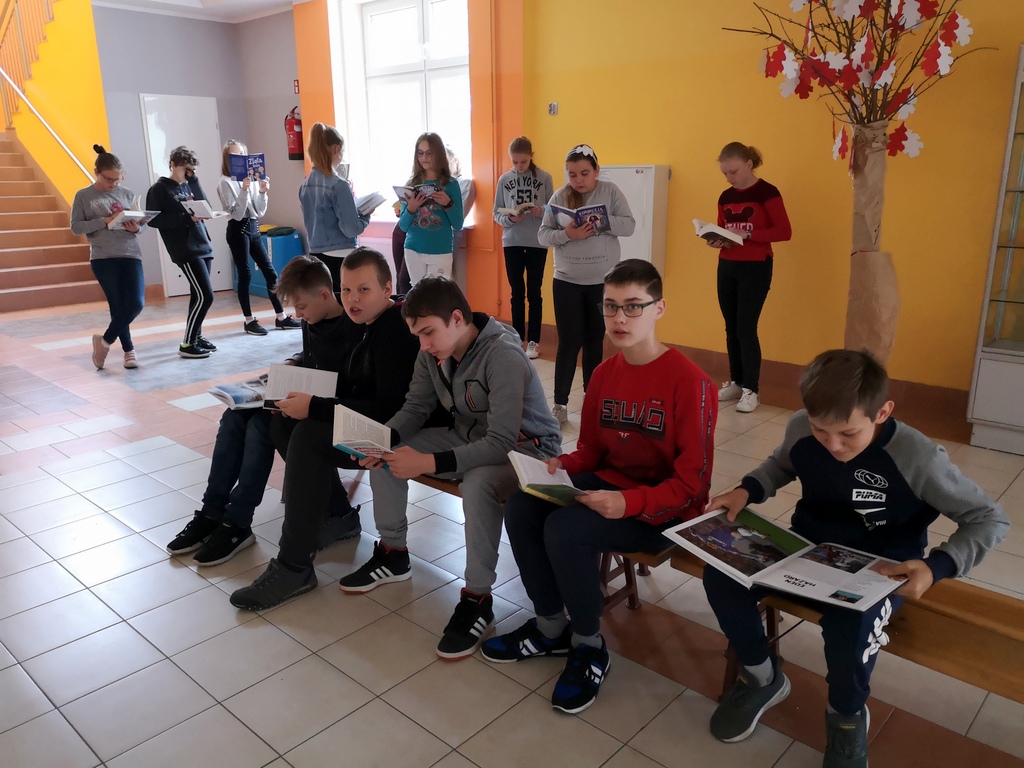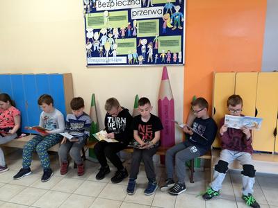 We wtorek 14 maja 2019r. uczniowie Szkoły Podstawowej w Bonikowie po raz pierwszy przystąpili do ogólnopolskiej akcji bicia rekordu w czytaniu na przerwie. Była ona realizowana w ramach XVI Ogólnopolskiego Tygodnia Bibliotek oraz kampanii społecznej „Cała Polska czyta dzieciom”. Honorowy patronat nad akcją objęła Fundacja „ABCXXXI - Cała Polska czyta dzieciom”, Lubuski Kurator Oświaty - Ewa Rawa oraz Prezydent Miasta Gorzowa Wielkopolskiego - Jacek Wójcicki. Z tej okazji w szkole w Bonikowie na dwóch przerwach o 10.35 i 11.30 dzieci z klas I-III oraz IV-VI czytały wybrane przez siebie książki. Część uczniów skorzystała z oferty szkolnej biblioteki, wypożyczając książki i zapoznając się z nowościami wydawniczymi. Najmłodszym w czytaniu pomagali starsi uczniowie i nauczyciele. Wśród uczennic z klasy VI królowała seria o Harrym Potterze. Również w ramach lekcji bibliotecznych pod okiem pani bibliotekarki uczniowie wspólnie czytali wybraną lekturę. Na zakończenie wszyscy ustawili się do wspólnego zdjęcia, próbując ułożyć w napis „CZYTAMY”. #przerwanaczytanie2019