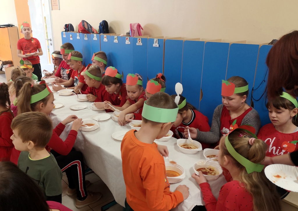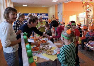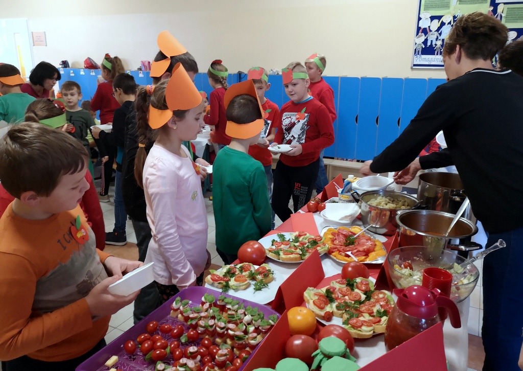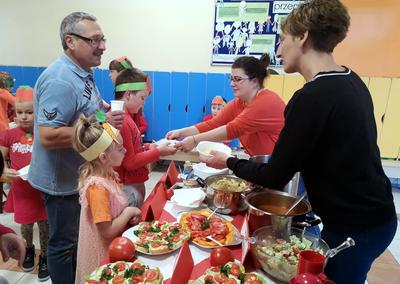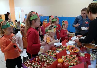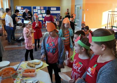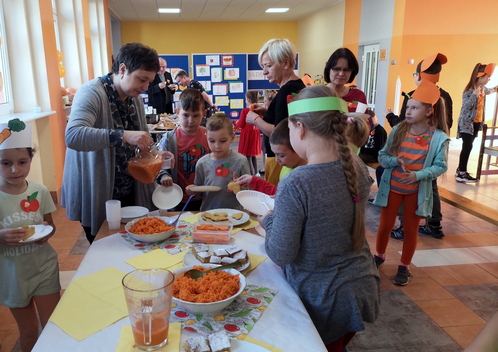 W środę 23 października 2019 roku , obchodziliśmy w naszej szkole DZIEŃ SADU I OGRODU. Uczniowie klas I-III oraz grupa „ 0” wspólnie z rodzicami i wychowawczyniami przygotowali smakołyki z darów sadu i ogrodu. Pierwszaki serwowały dania z marchewki, uczniowie klasy drugiej z dyni, klasa trzecia z pomidora, a grupa „O” z jabłek. Dodatkowo każda klasa wykonała tematyczne gazetki na temat reprezentowanego przez siebie warzywa lub owocu. Dzień upłynął nam smacznie, zdrowo i kolorowo.