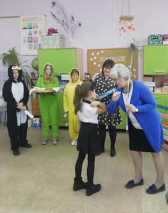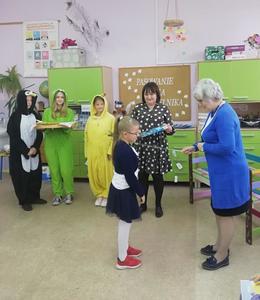 Na pamiątkę uczniowie otrzymali książkę, zakładkę i mały miodzik wręczony przez Kubusia Puchatka.