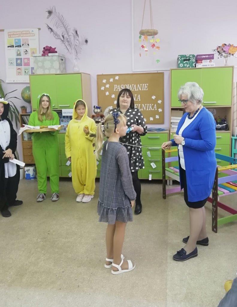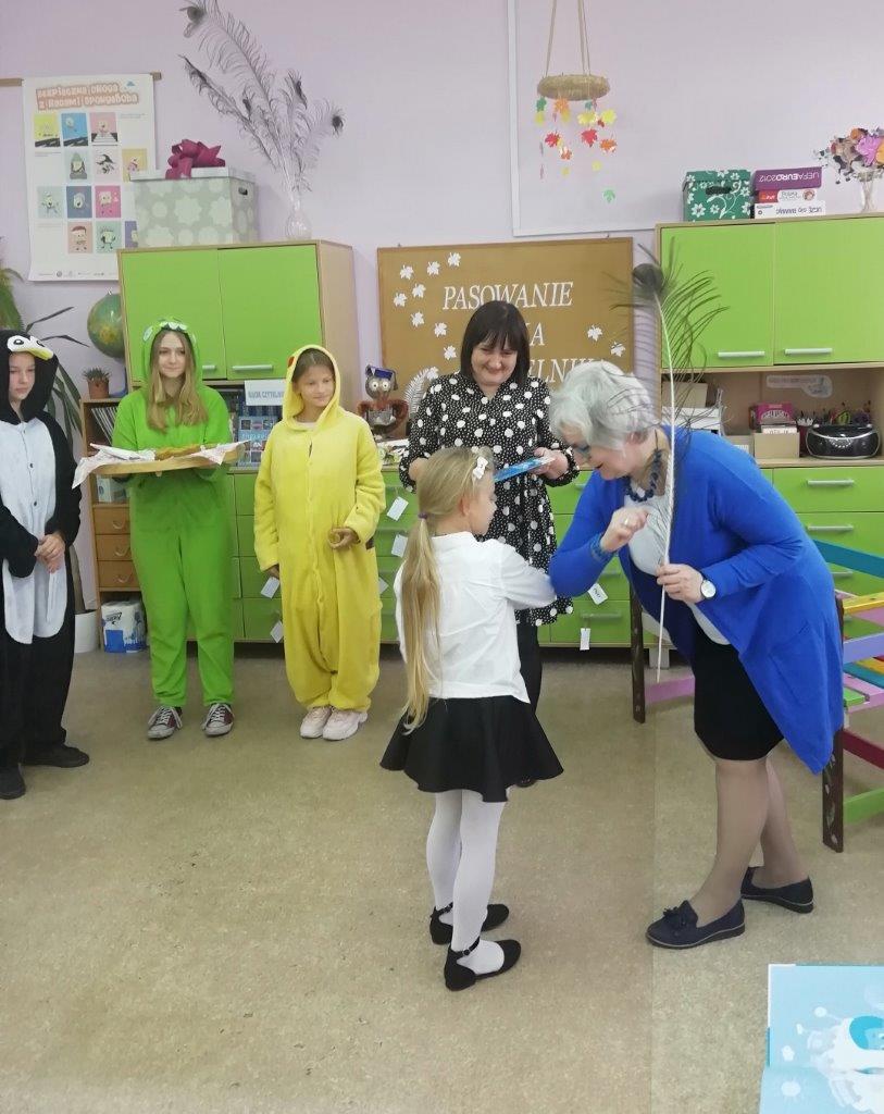 Pasowanie na czytelnika to oficjalne przyjęcie uczniów do grona czytelników biblioteki. Zanim jednak uczniowie zostali przyjęci do tak zacnego grona: rozwiązali krzyżówkę, odpowiedzieli na bajkowe zagadki, pochwalili się umiejętnością czytania, odgadywali z jakiej baśni H. CH. Andersena pochodzą przygotowane przez każdego z uczniów gadżety.