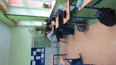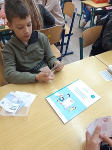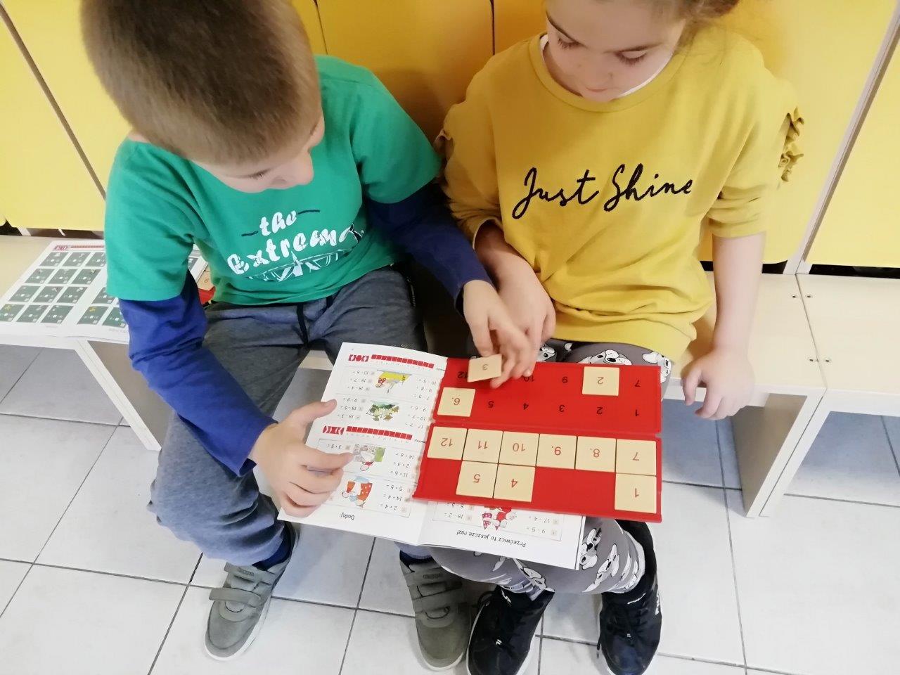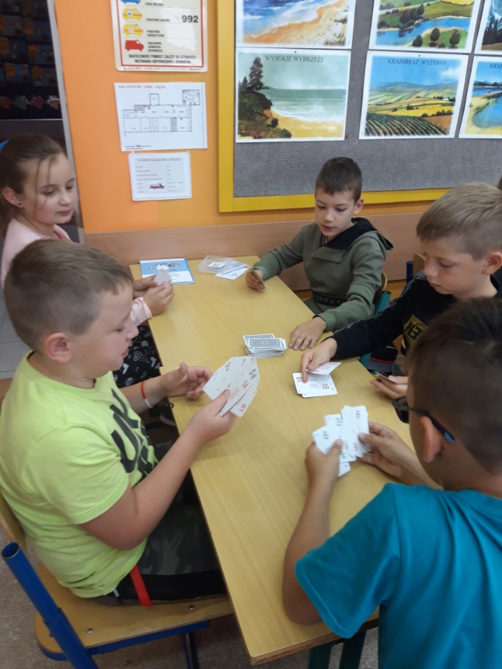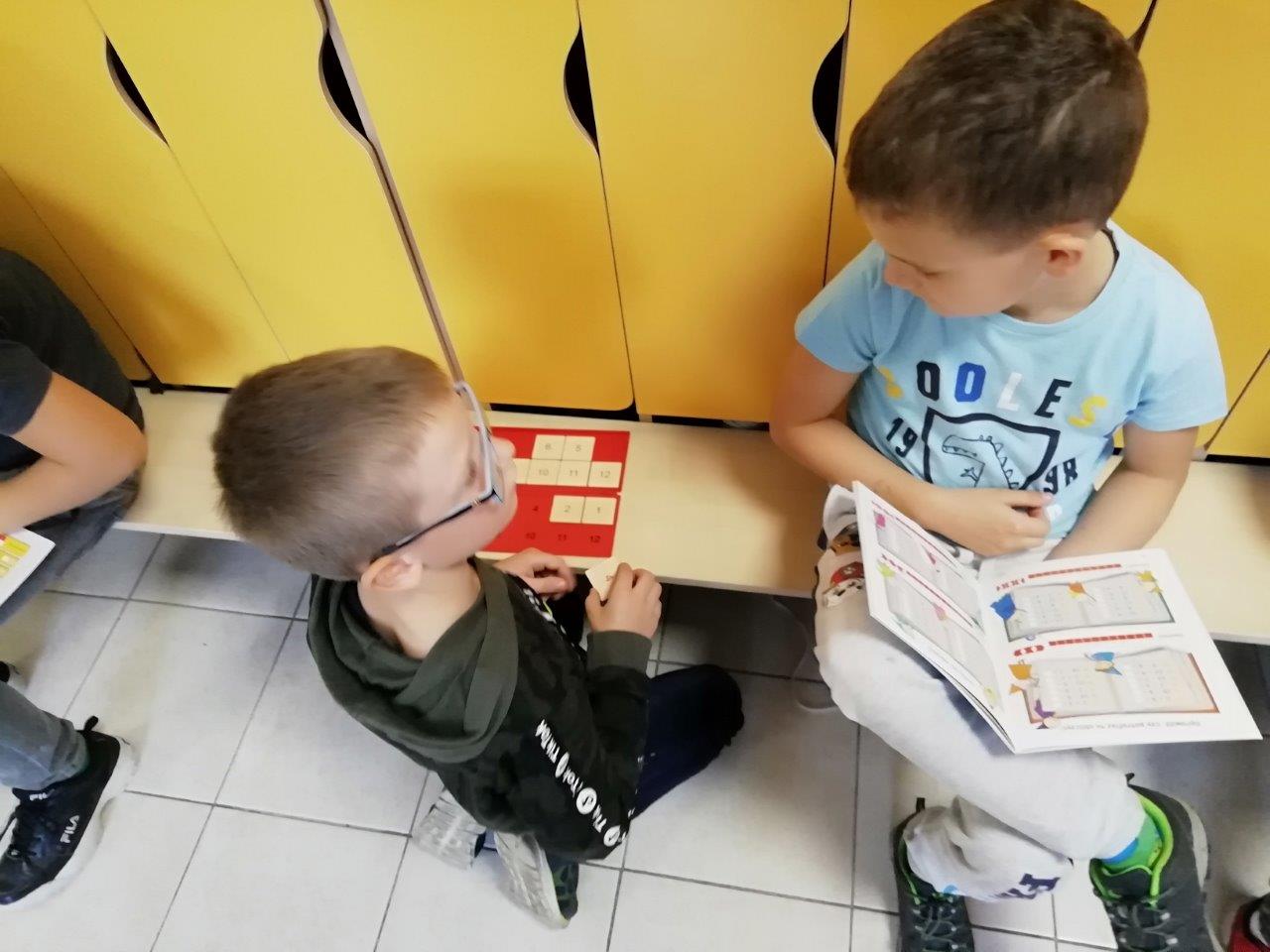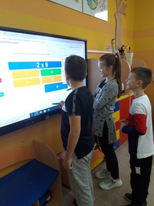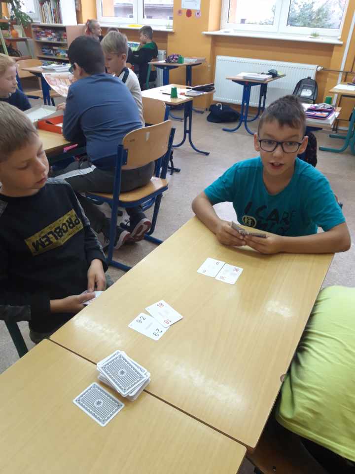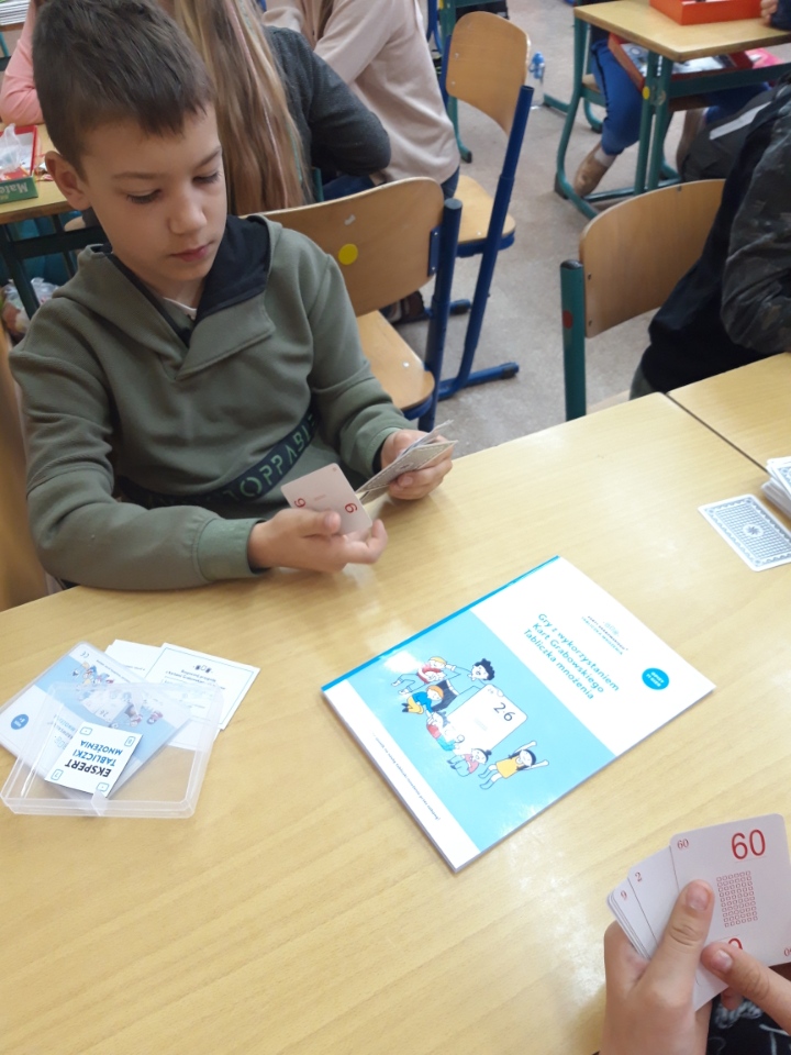 Uczniowie rozwiązywali zagadki związane z tabliczką mnożeni, a klasa trzecia wykorzystała do gry Karty Grabowsiego.