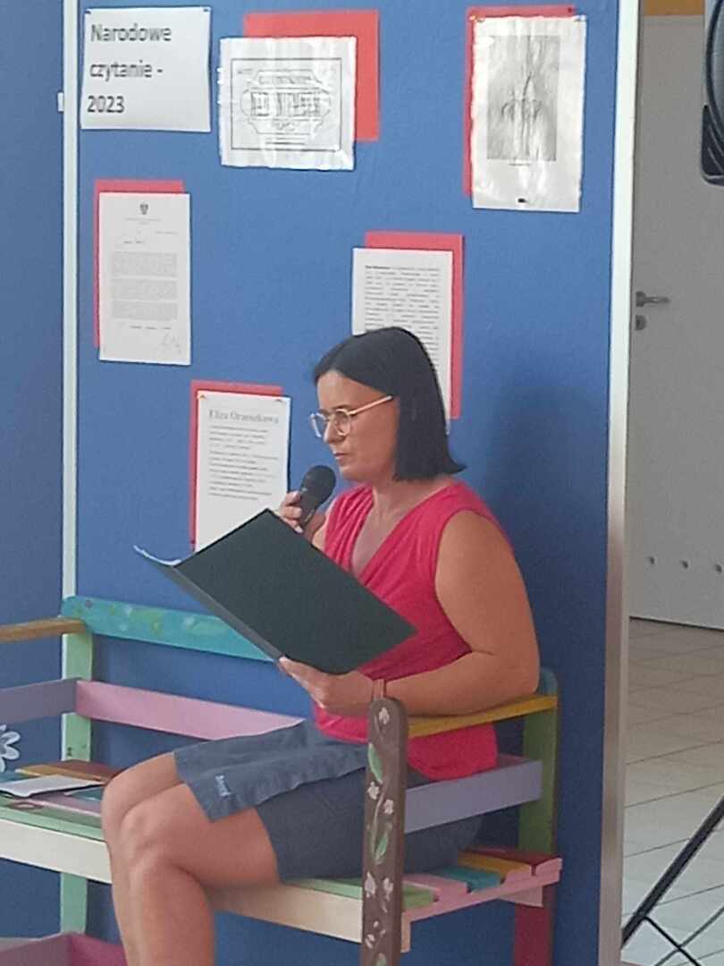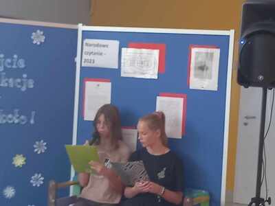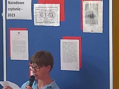 We wtorek i środę uczniowie naszej szkoły wzięli udział w Narodowym Czytaniu. Ogólnopolska akcja pod patronatem prezydenta RP odbyła się w sobotę 9 września. W tym roku lekturą czytaną podczas Narodowego Czytania było ,,Nad Niemnem" Elizy Orzeszkowej. W czasie poniedziałkowych lekcji języka polskiego uczniowie poznali podstawowe informacje o lekturze, natomiast we wtorek i środę wysłuchali fragmentów ,,Nad Niemnem" w wykonaniu pani dyrektor Beaty Kubackiej, pań Moniki Wyrzykiewicz oraz Karoliny Walczak-Nowak oraz uczniów z klasy 7: Oli Kozłowskiej, Zosi Mani, Samanty Frąckowiak, Wiktora Dopierały, Mai Kazubowskiej. Na koniec chętni otrzymali pamiątkowe pieczęcie do zeszytu lub domowych egzemplarzy książki Orzeszkowej.