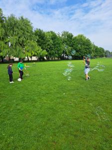 Na dzieci czekały również dmuchańce, zabawy na świeżym powietrzu, grill oraz słodkie i zdrowe przekąski.