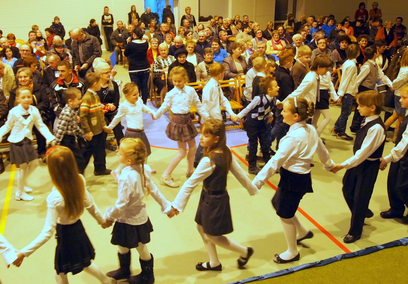 Spotkanie zakończyło wspólne śpiewanie piosenek biesiadnych, z pomocą przygotowanych śpiewników. Niektórzy dziadkowie dali się też zaprosić swoim wnukom do wspólnego tańca. Oprawą muzyczną tej uroczystości zajął się pan Henryk Myler, a sprzęt nagłaśniający, łączne z obsługą, został wypożyczony ze szkoły w Starych Oborzyskach.