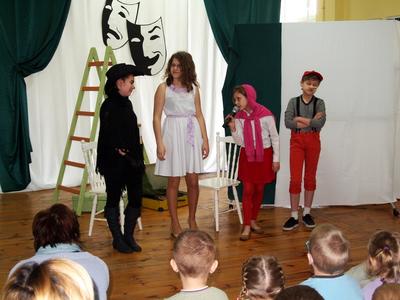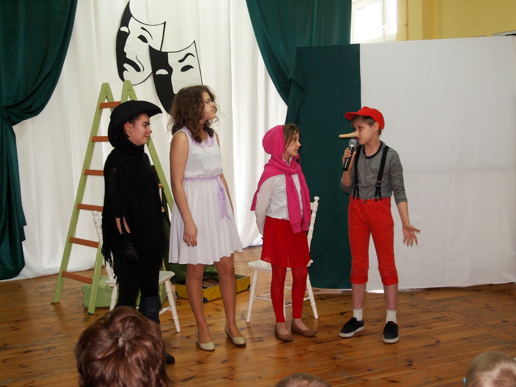 Spotkanie podzielone zostało na dwie części. Pierwszą z nich stanowiło przedstawienie, którego treść dobrze odzwierciedlają słowa Jerzego Grotowskiego: „Jedna jest tylko wartość, której ani film, ani telewizja nie zdołają nigdy przejąć od teatru: bezpośrednia więź rodząca się pomiędzy żywymi istnieniami.” Główni bohaterowie przedstawienia to dobrze znane postaci z bajek. Na scenie mogliśmy zobaczyć Kota w Butach (Sandra Frąckowiak), Pinokia (Mateusz Bossy), Królewnę Śnieżkę (Wiktoria Rataj), Czerwonego Kapturka (Katarzyna Sobkowiak), Siedmiu Krasnoludków (Andrzejewski Dawid, Matuszczak Konrad, Piotrowski Jakub, Szymkowiak Adam, Wasielewski Łukasz, Wujczak Jakub) oraz Wielkiego Skrzata (Eryk Maćkowiak). Bohaterowie musieli zmierzyć się z własnymi słabościami, jak próżność, chęć zdobycia sławy za wszelką cenę, hołdowanie taniej rozrywce w postaci reality show. Przedstawienie powstało w oparciu o scenariusz autorstwa Jana Jakuba Należytego.