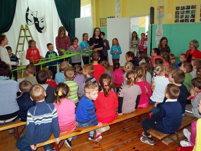 Na zakończenie pani Dyrektor wręczyła naszemu gościowi bukiet kwiatów i podziękowała wszystkim zebranym za miło spędzony czas. Pani Magdalena następnie udała się do przedszkola, gdzie wspólnie z najmłodszymi przeprowadziła różne gry i zabawy ruchowe.