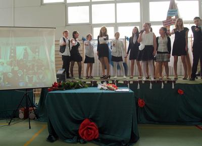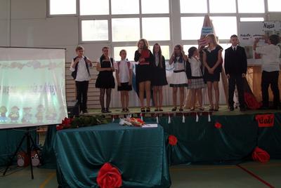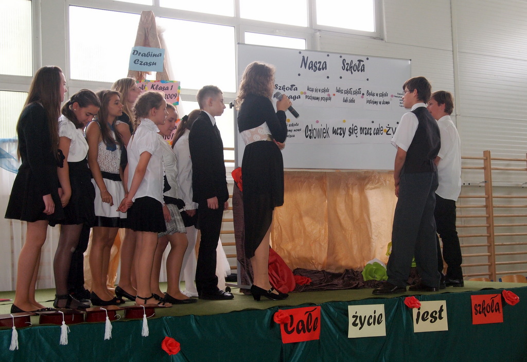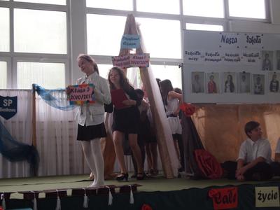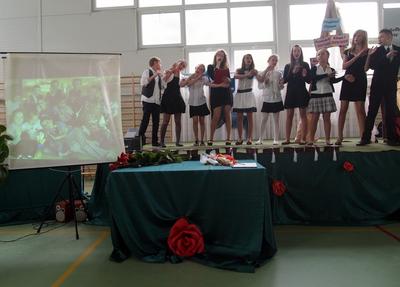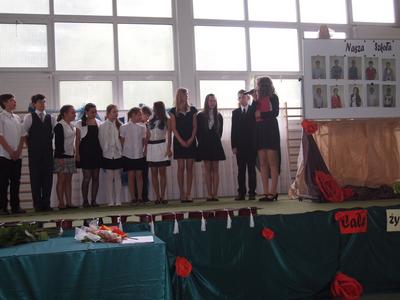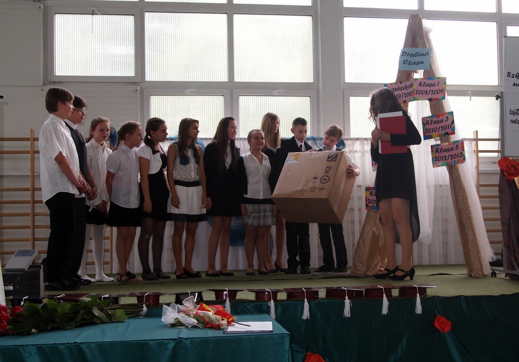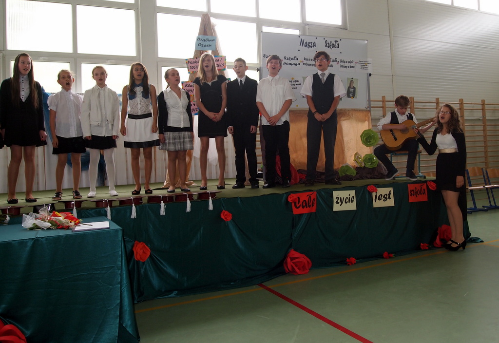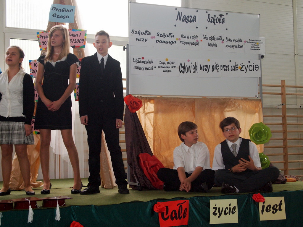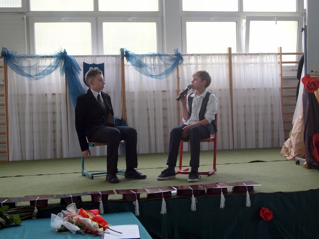 Tegoroczni absolwenci zaprezentowali się w montażu słowno – muzyczno – filmowym zabierając wszystkich w podróż w czasie, która przypomniała wspaniałe chwile przeżyte w szkole. Dziękowali nauczycielom za trud włożony w ich edukację, a rodzicom za poświęcony czas. Koleżanki i koledzy z klasy piątej pożegnali absolwentów przygotowaną inscenizacją i wręczyli na pamiątkę upominki.