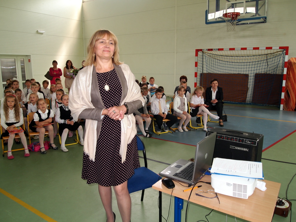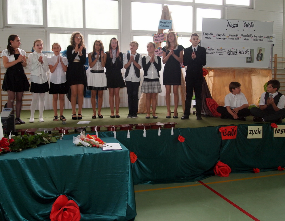 dopiero pilna praca go obrobi i wartość mu wielką nada”, a następnie złożyła życzenia uczniom klasy szóstej.