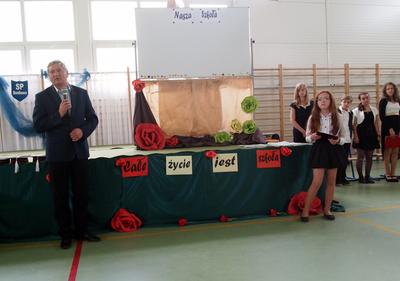 Życzenia do absolwentów, uczniów i nauczycieli skierowali również obecni na uroczystości: pan Kazimierz Józefowski – radny Rady Powiatu Kościańskiego i Przewodnicząca Rady Rodziców - pani Joanna Szymkowiak.