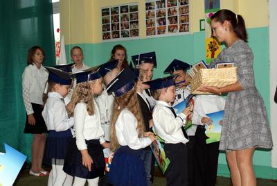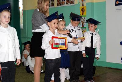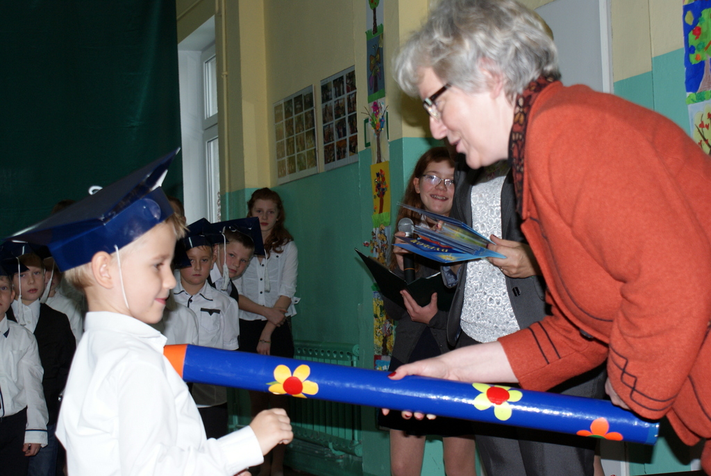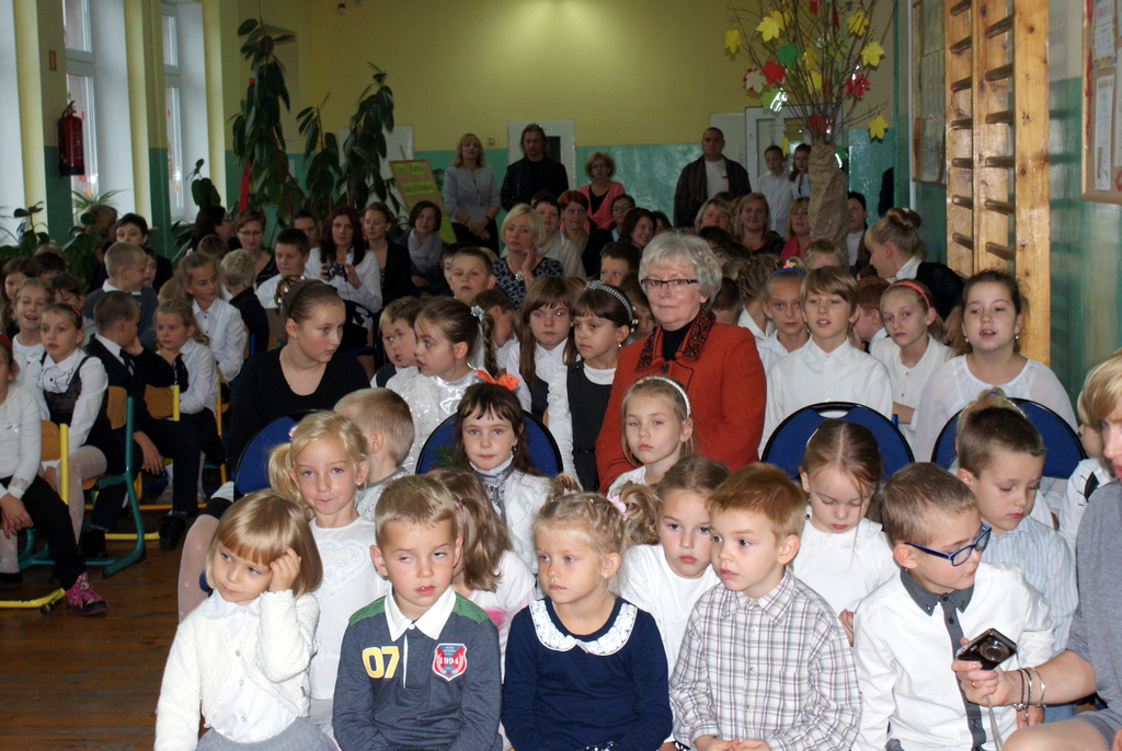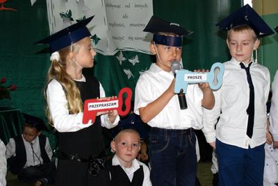 Po pasowaniu pani dyrektor złożyła wszystkim nauczycielom i pracownikom Zespołu Szkół okolicznościowe życzenia przesłane przez Wójta Gminy Kościan. Natomiast uczniowie z kl. IV – VI zaprezentowali przedstawienie pt. „Zjazd klasowy”, po którym przedstawiciel klasy VI w imieniu uczniów złożył serdeczne życzenia nauczycielom i pracownikom szkoły.