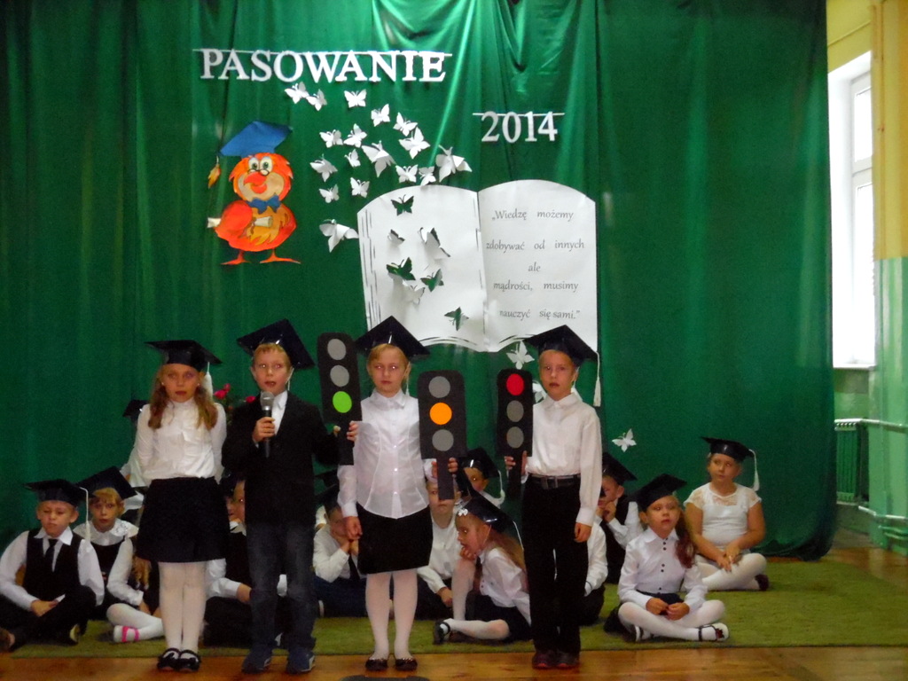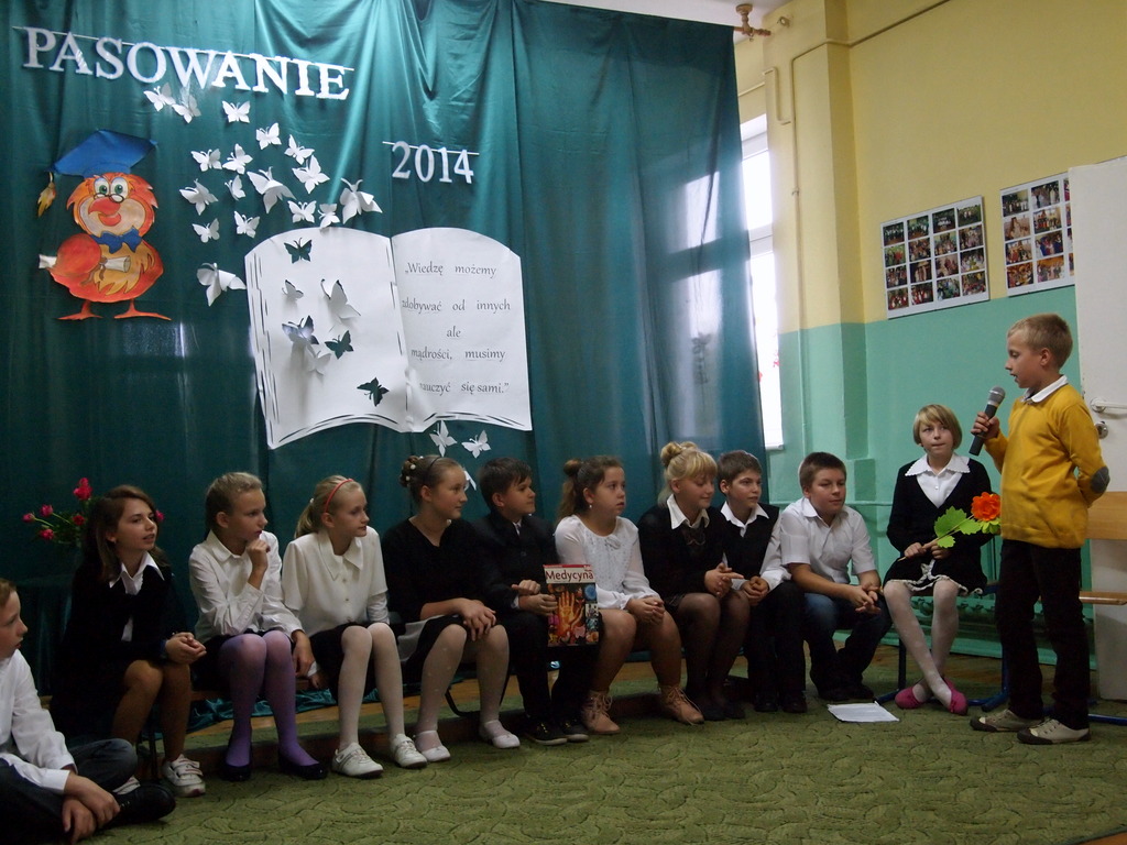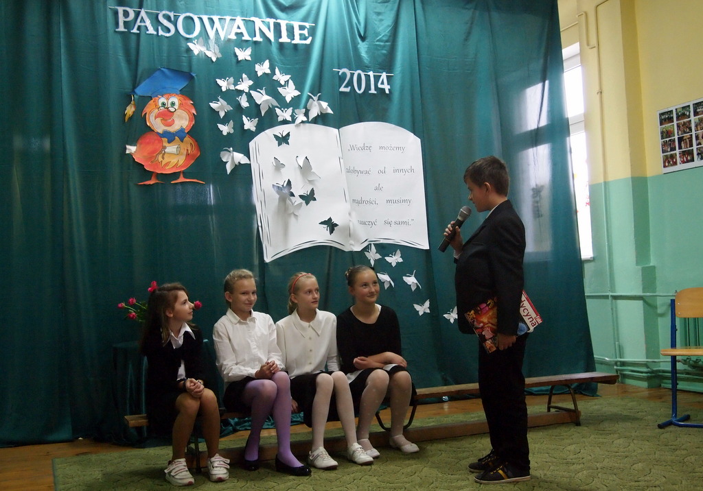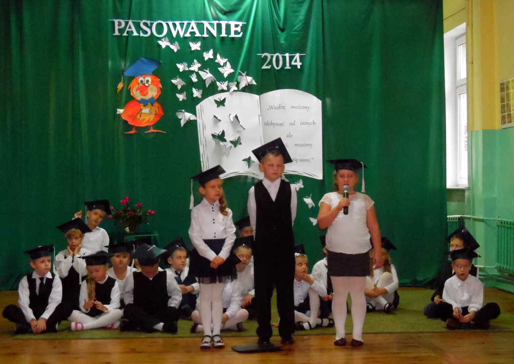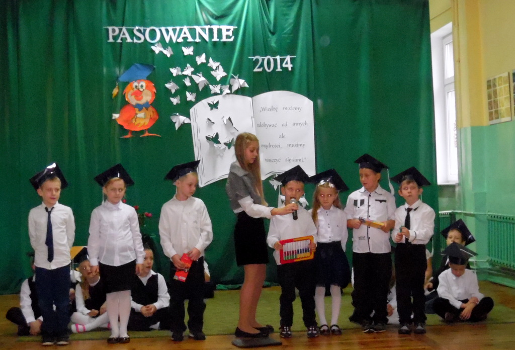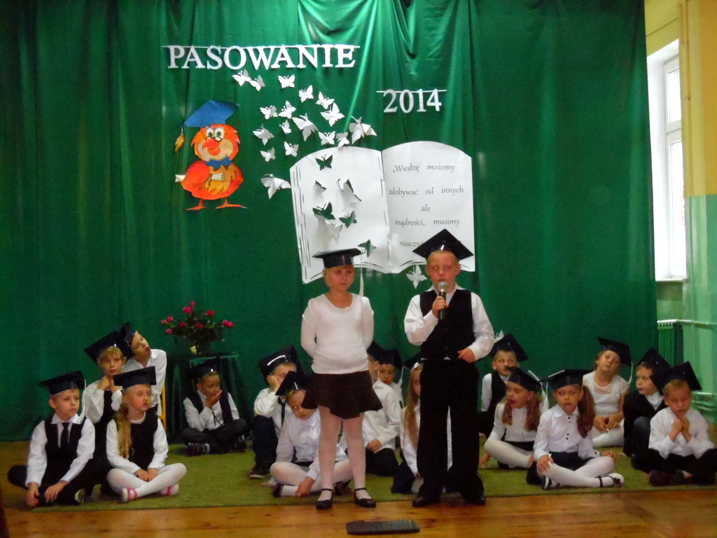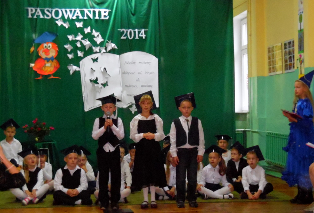 Zgodnie ze szkolną tradycją, dnia 14 października w Dzień Edukacji Narodowej, w naszej szkole przyjmowani są do braci uczniowskiej pierwszoklasiści. W tym roku szkolnym do uroczystego pasowania przystąpiło 20 uczniów, w tym 11 sześciolatków.