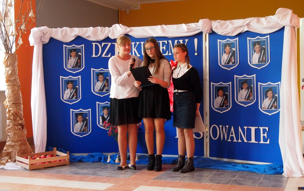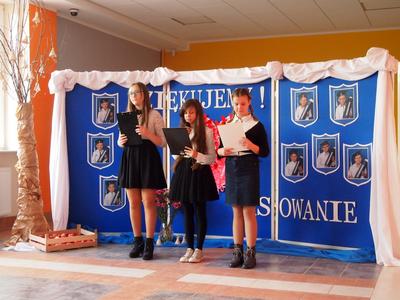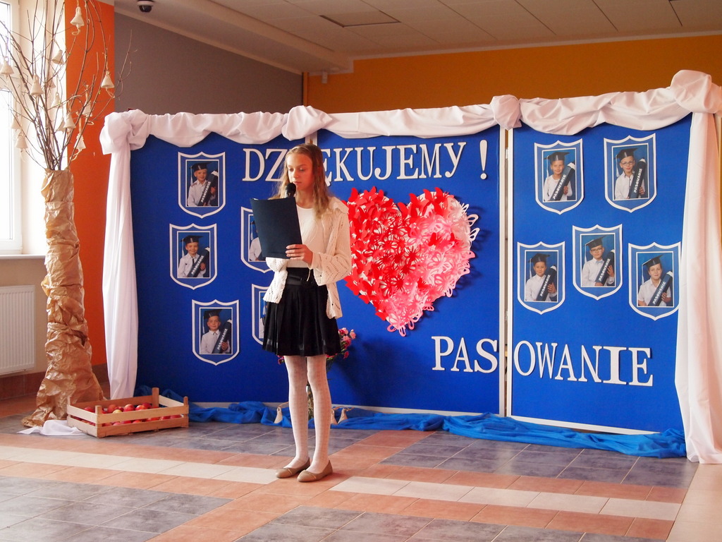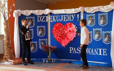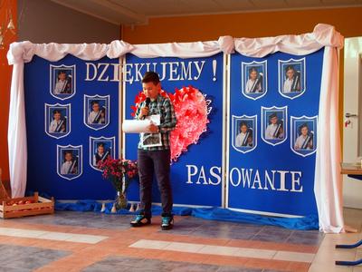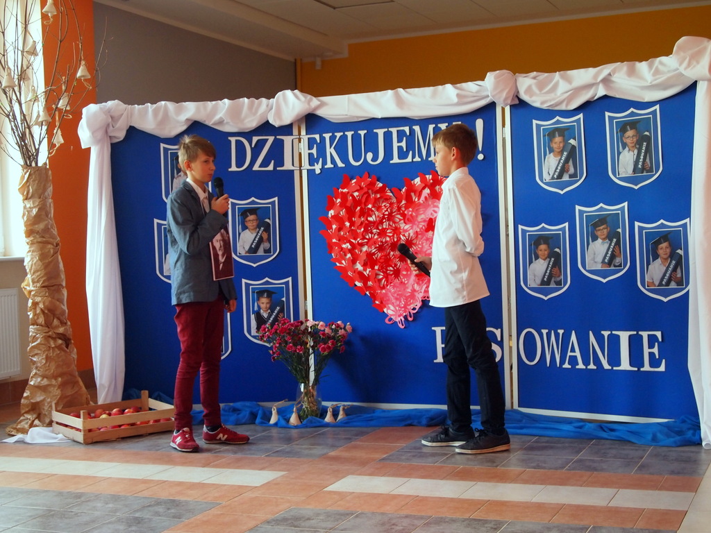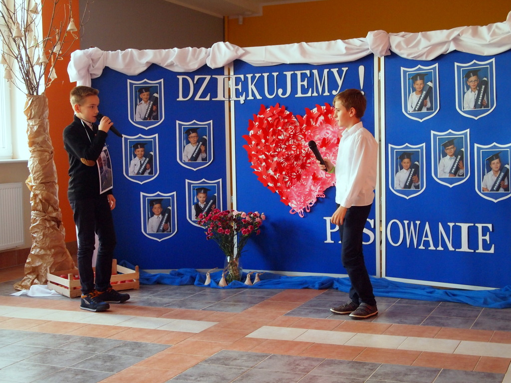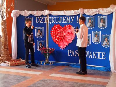 W tym dniu obchodziliśmy również Dzień Edukacji Narodowej. Najpierw nauczyciele, pracownicy szkoły i brać szkolna obejrzeli montaż słowno-muzyczny przygotowany przez uczniów klasy VI, a następnie usłyszeli ciepłe życzenia i podziękowania za codzienny trud od obecnych na uroczystości wdzięcznych żaków.