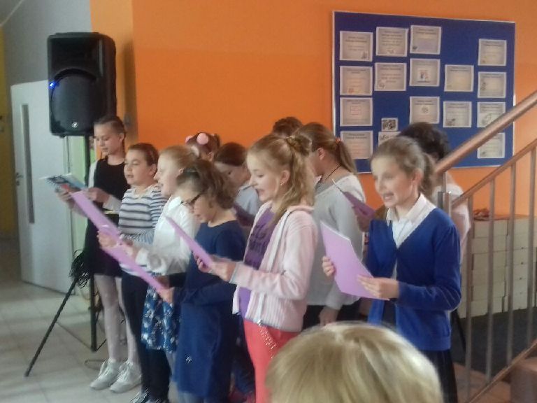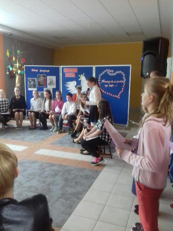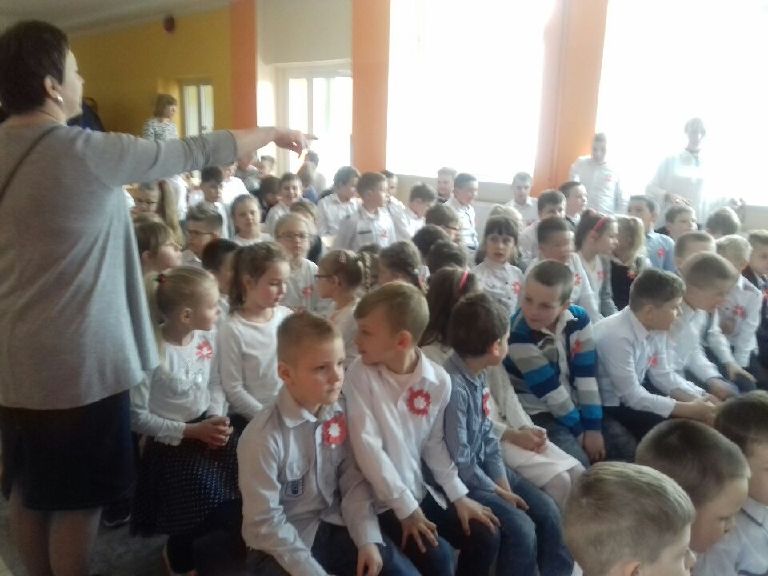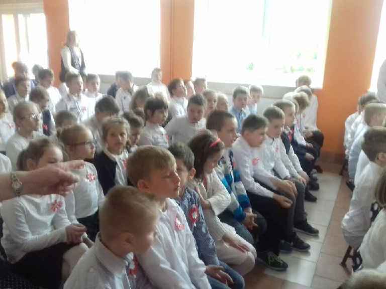„Wiwat Król nasz kochany! Wiwat Sejm! Wiwat, wiwat ustawa!” -takie okrzyki słychać było podczas akademii z okazji uchwalenia Konstytucji 3 Maja. Uroczystość, przeplataną pieśniami wykonanymi przez chórek szkolny pod kierunkiem pani Bogumiły Nowak, przygotowali uczniowie z klas IV-VI. Natomiast piękną scenografię zaprojektowała pani Hanna Mania.