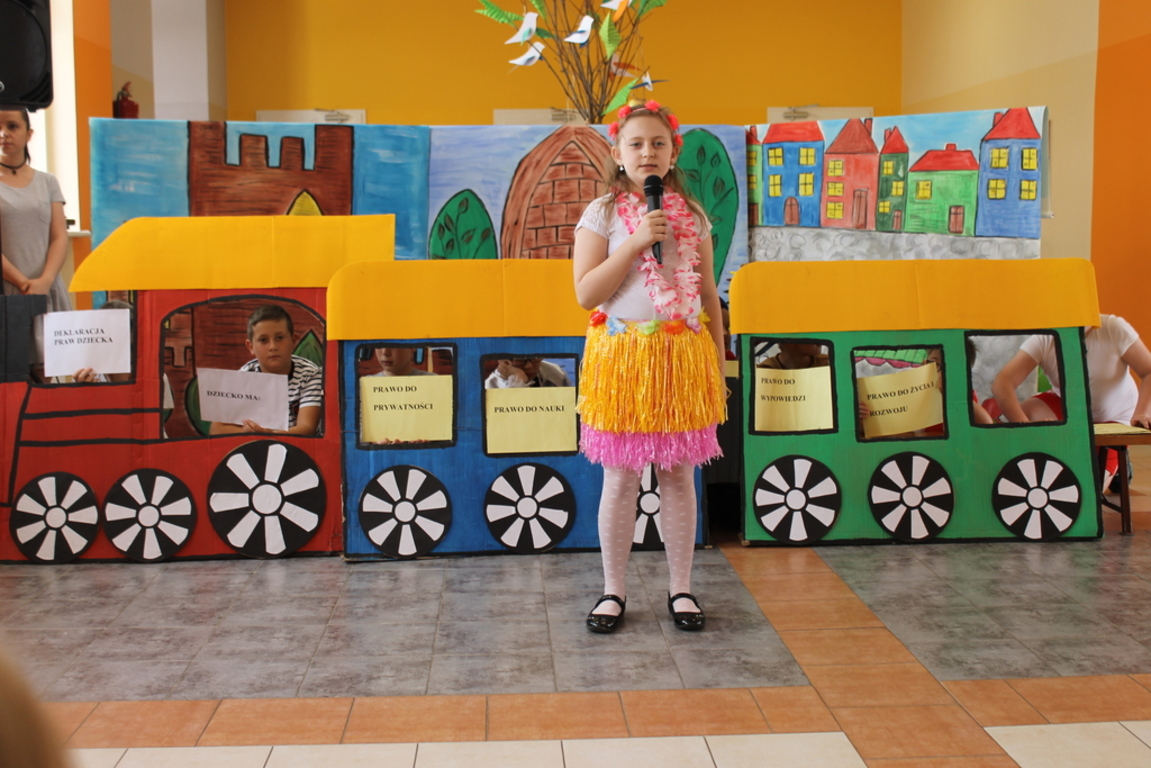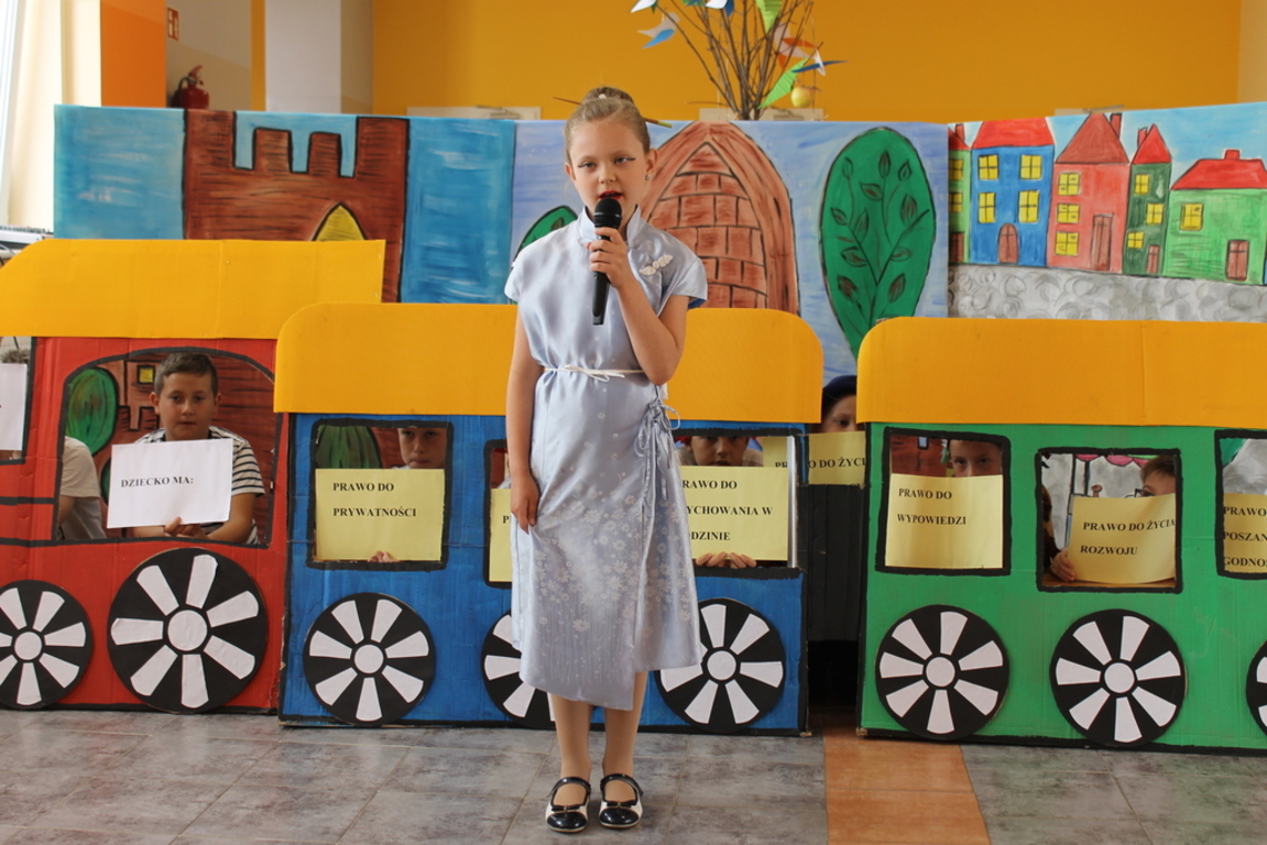 Dnia 26 maja 2017r. uczniowie klas I – III poprosili swoje mamy o przybycie do szkoły. Z okazji święta Dnia Matki drugoklasiści zaprezentowali przedstawienie teatralne pt.: „ Apolejka”. Uczniowie klasy trzeciej przygotowali montaż słowno – muzyczny o prawach dziecka. Pierwszoklasiści natomiast zaśpiewali piosenkę „ Afryka dla mamy” oraz złożyli wierszowane życzenia. Chcąc wyrazić swoją miłość i szacunek dla mam, dzieci zaśpiewały radosną piosenkę oraz gromkie „Sto lat”. Wręczyły także przybyłym mamom własnoręcznie wykonane upominki. Miłe chwile uwieczniły grupowe zdjęcia mam z ich pociechami.