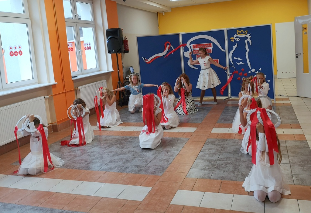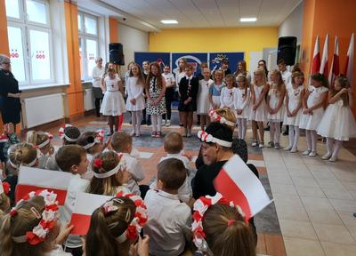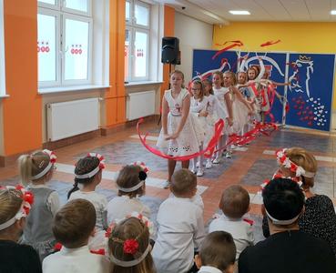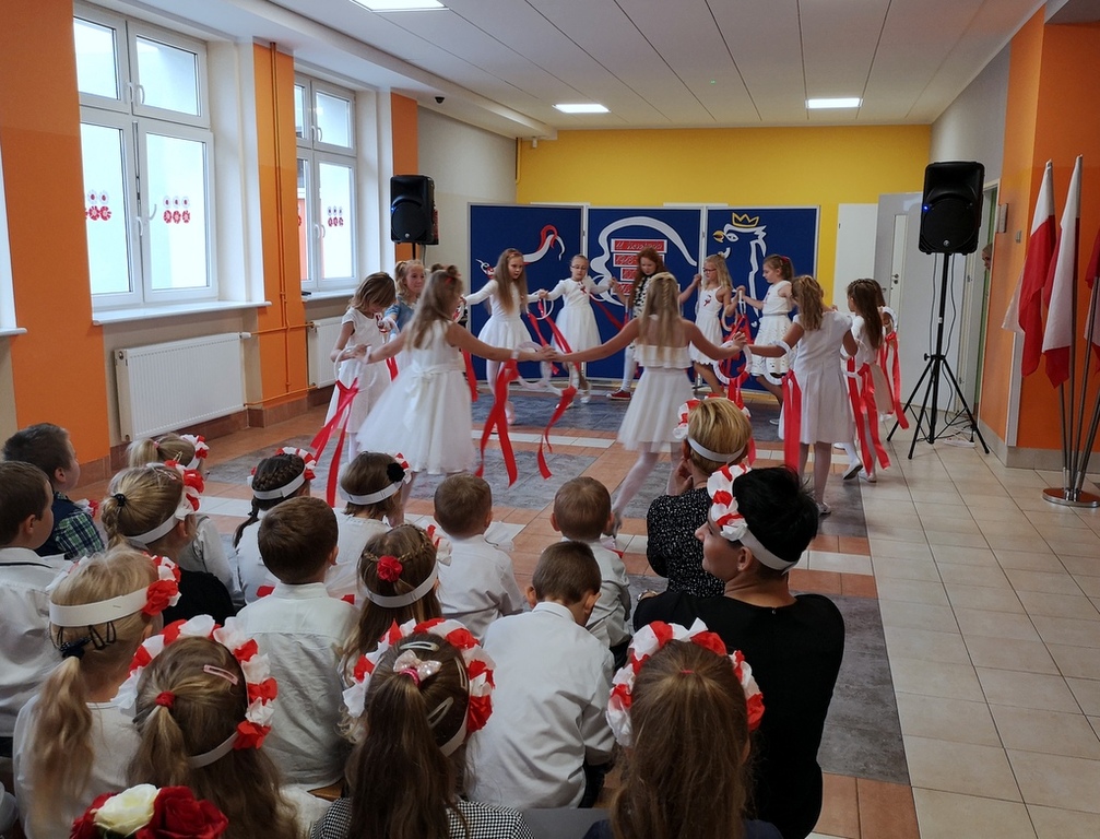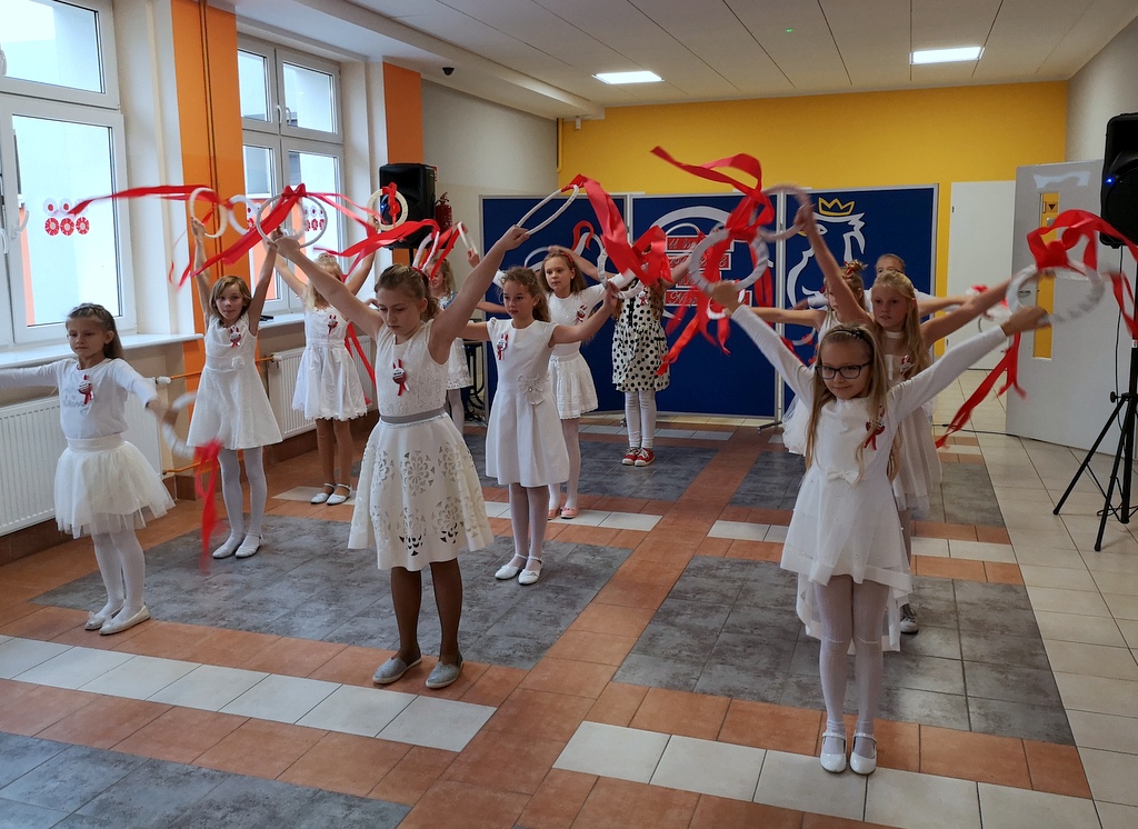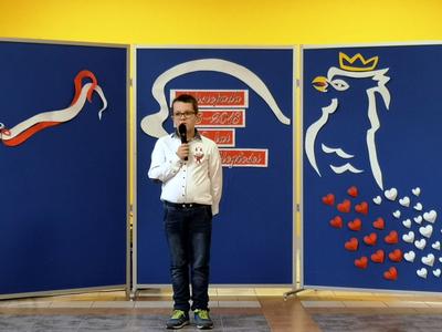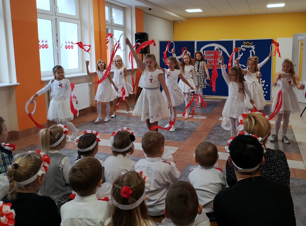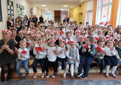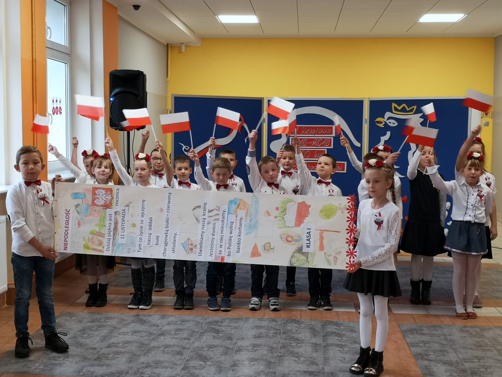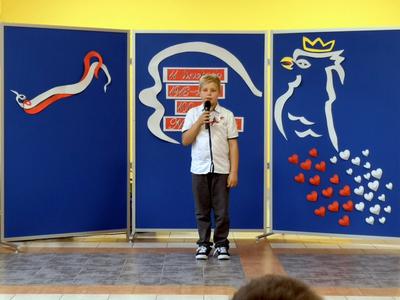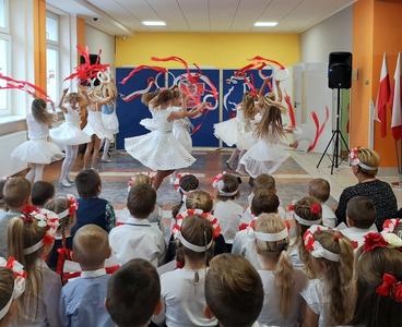 Kolejnym punktem tego świątecznego dnia był „Szkolny Konkurs Recytatorsko-Wokalny z okazji 100. Rocznicy Odzyskania przez Polskę Niepodległości”. Wybrzmiały, doskonale przygotowane przez uczniów z klas 0-VI , patriotyczne piosenki i wiersze.