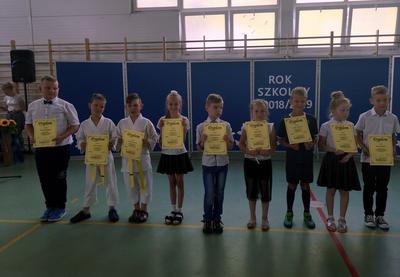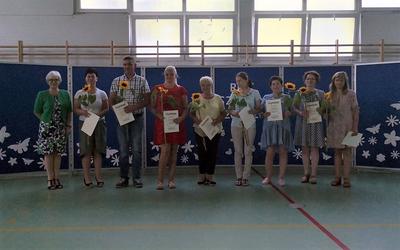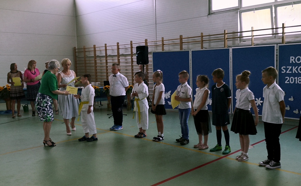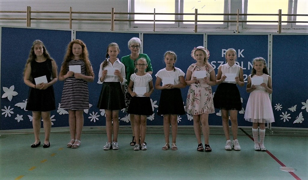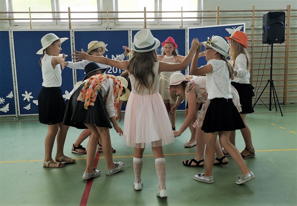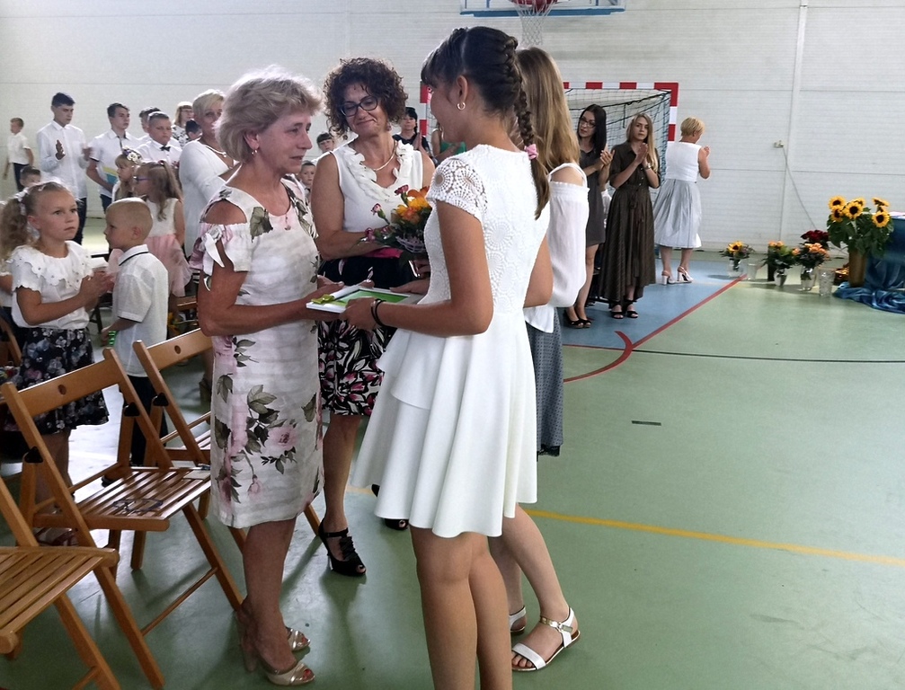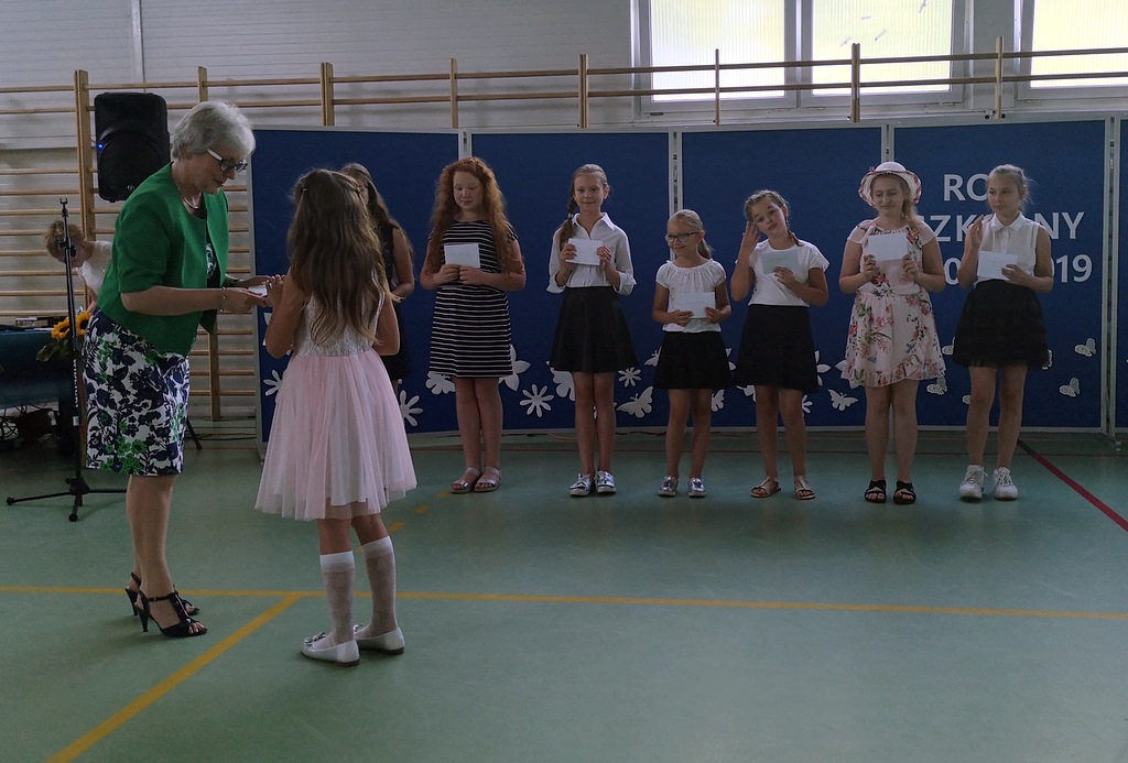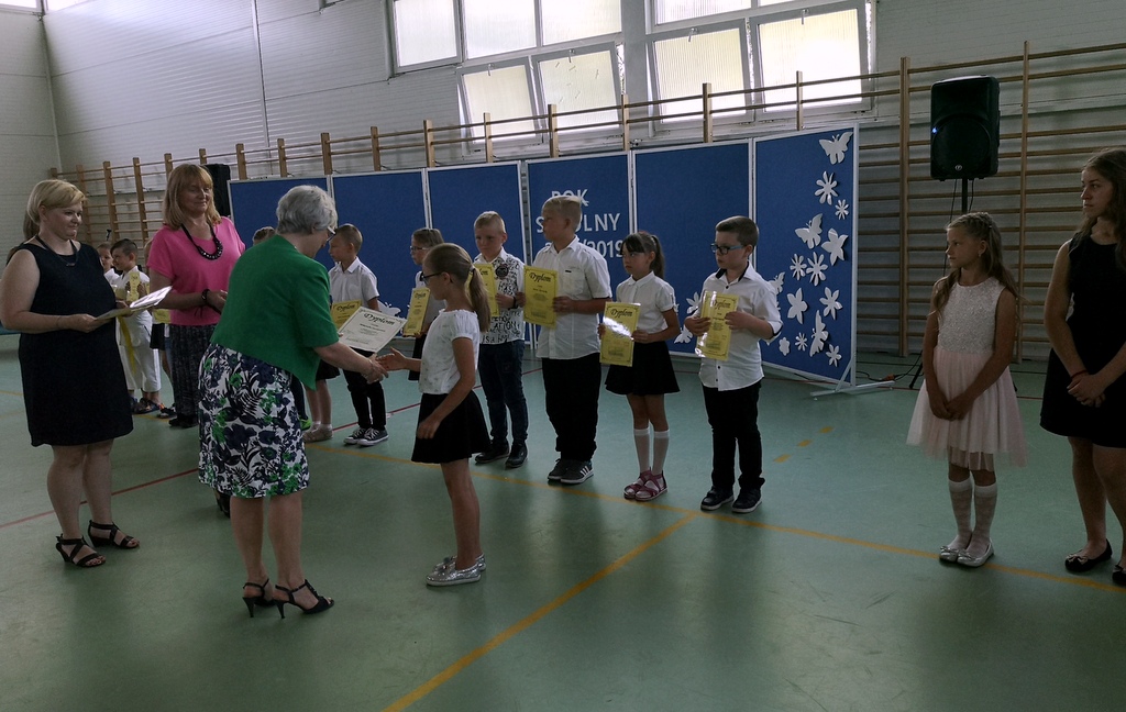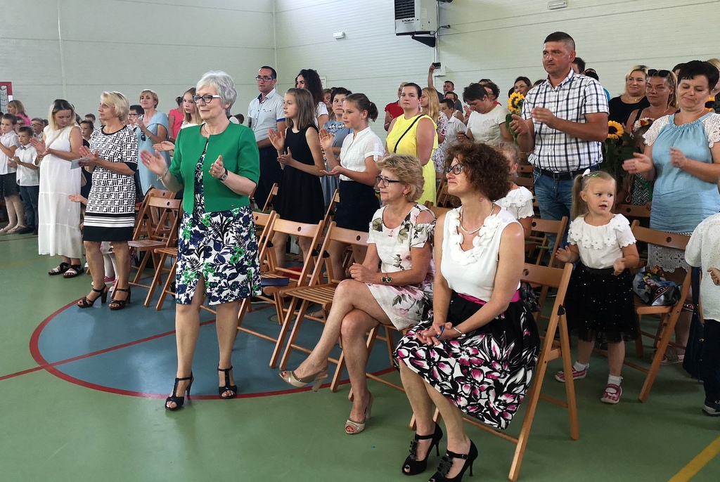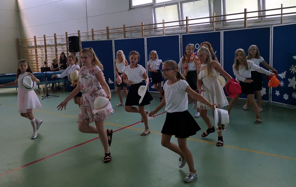 Na koniec dziewczynki z klas IV-VI zaprezentowały się w pokazie piramid. W klasach wszyscy uczniowie otrzymali świadectwa i pożegnali się ze swoimi wychowawcami.