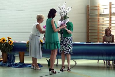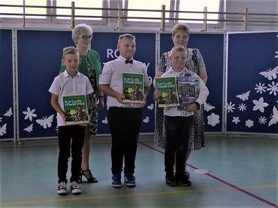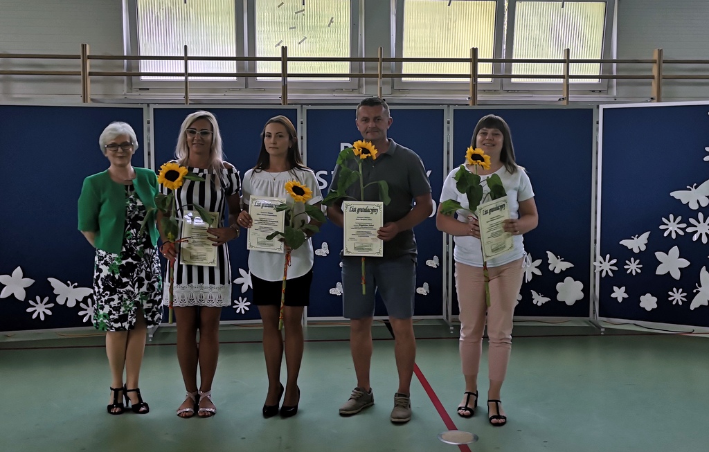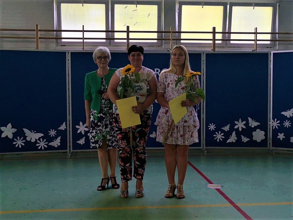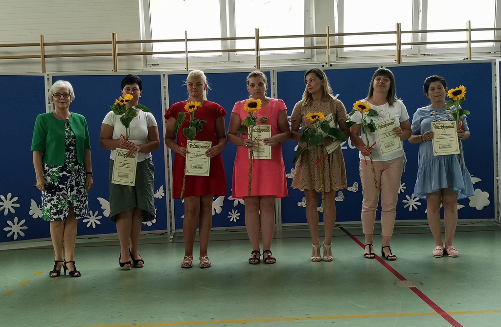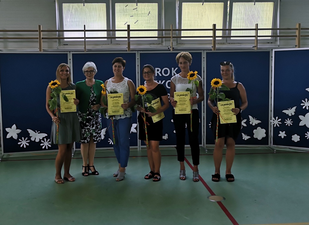 Niestety 19 czerwca 2019r. był dla uczniów i nauczycieli oraz pracowników szkoły dniem pożegnań. Pracę w szkole w Bonikowie zakończyły pani Marlena Nadobnik, pani Anna Mendel oraz pani Alicja Górniak. Po 33 latach na zasłużoną emeryturę odeszła również pani Grażyna Adamczak- sekretarz szkoły. Ola Wojda z klasy VI w imieniu wszystkich dzieci pożegnała panią Adamczak i wręczyła jej pamiątkowe zdjęcie oraz kwiaty.