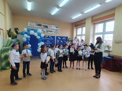 Uczniowie klasy pierwszej podczas występu prezentowali swoje umiejętności oraz pokazali, że zasługują na miano ucznia. Zarówno część artystyczna, jak i złożone uroczyste ślubowanie zostało nagrane, tak aby dzieci mogły z najbliższymi osobami przeżyć tę uroczystość jeszcze raz.