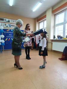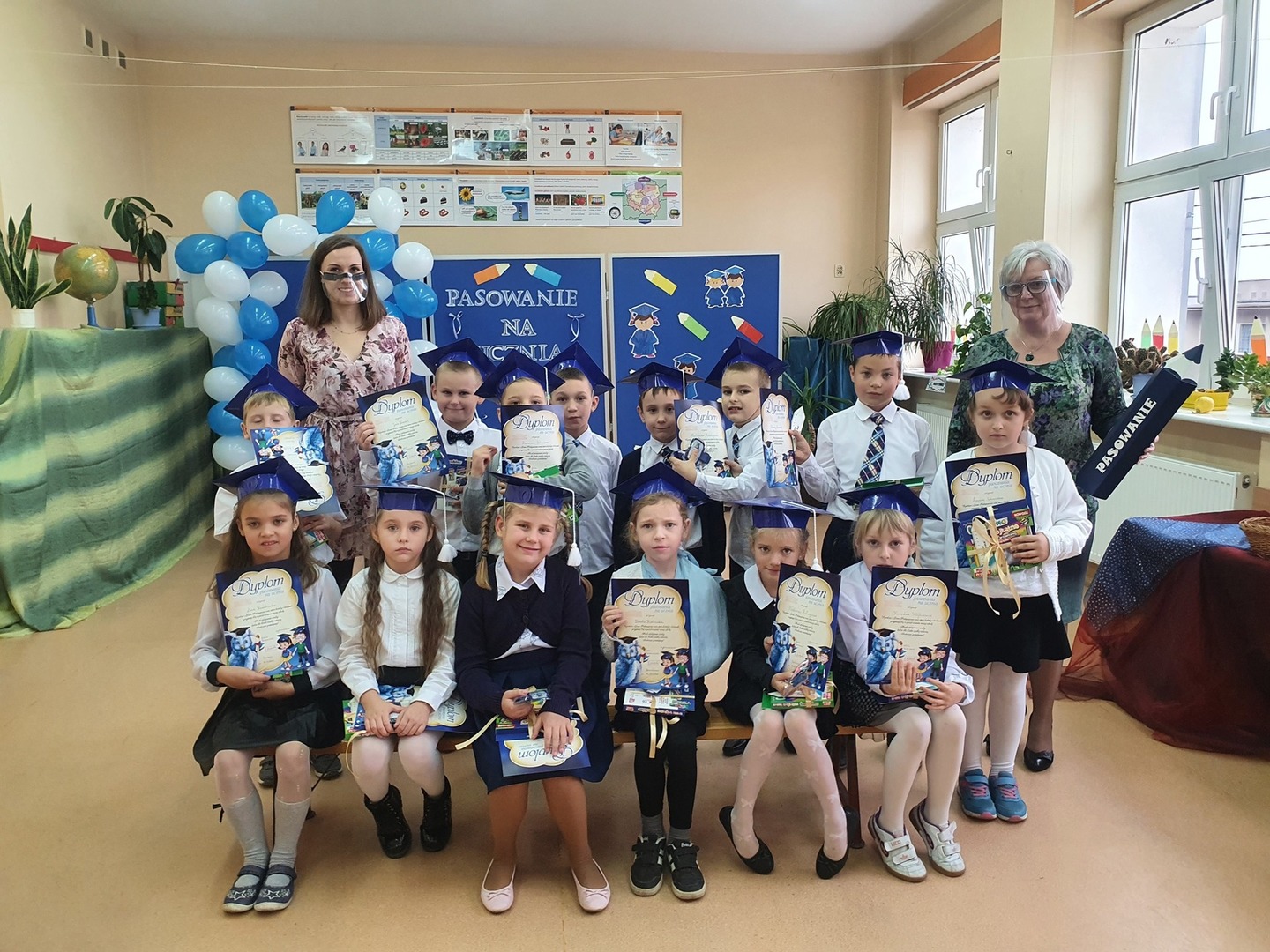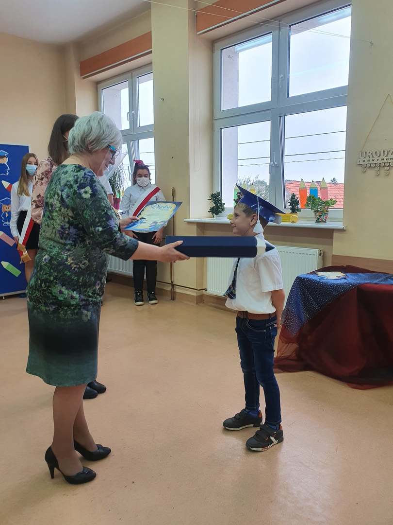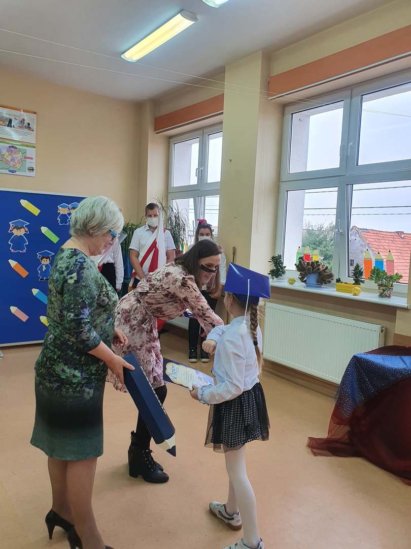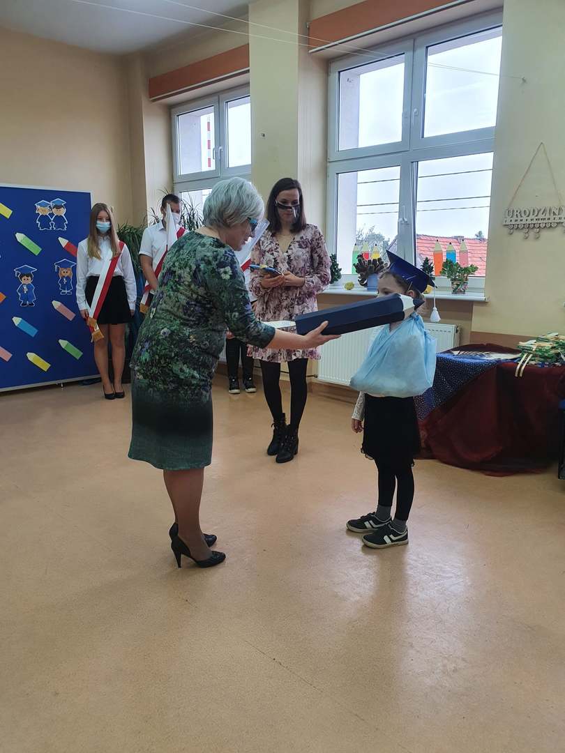 Następnie pani Dyrektor dokonała pasowania dzieci na uczniów Szkoły Podstawowej w Bonikowie. Każdy uczeń otrzymał dyplom okolicznościowy, prezenty i upominki.
