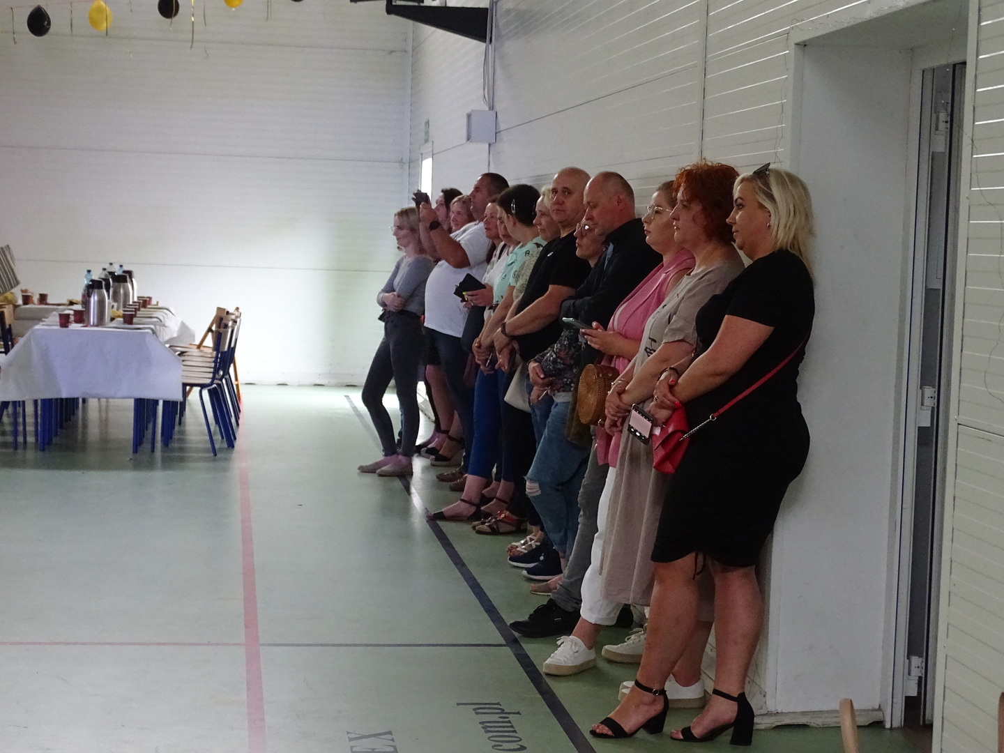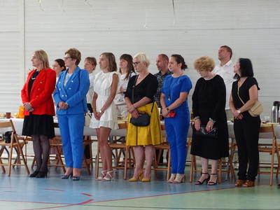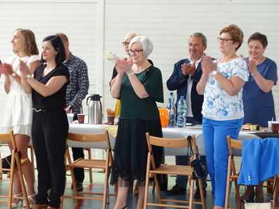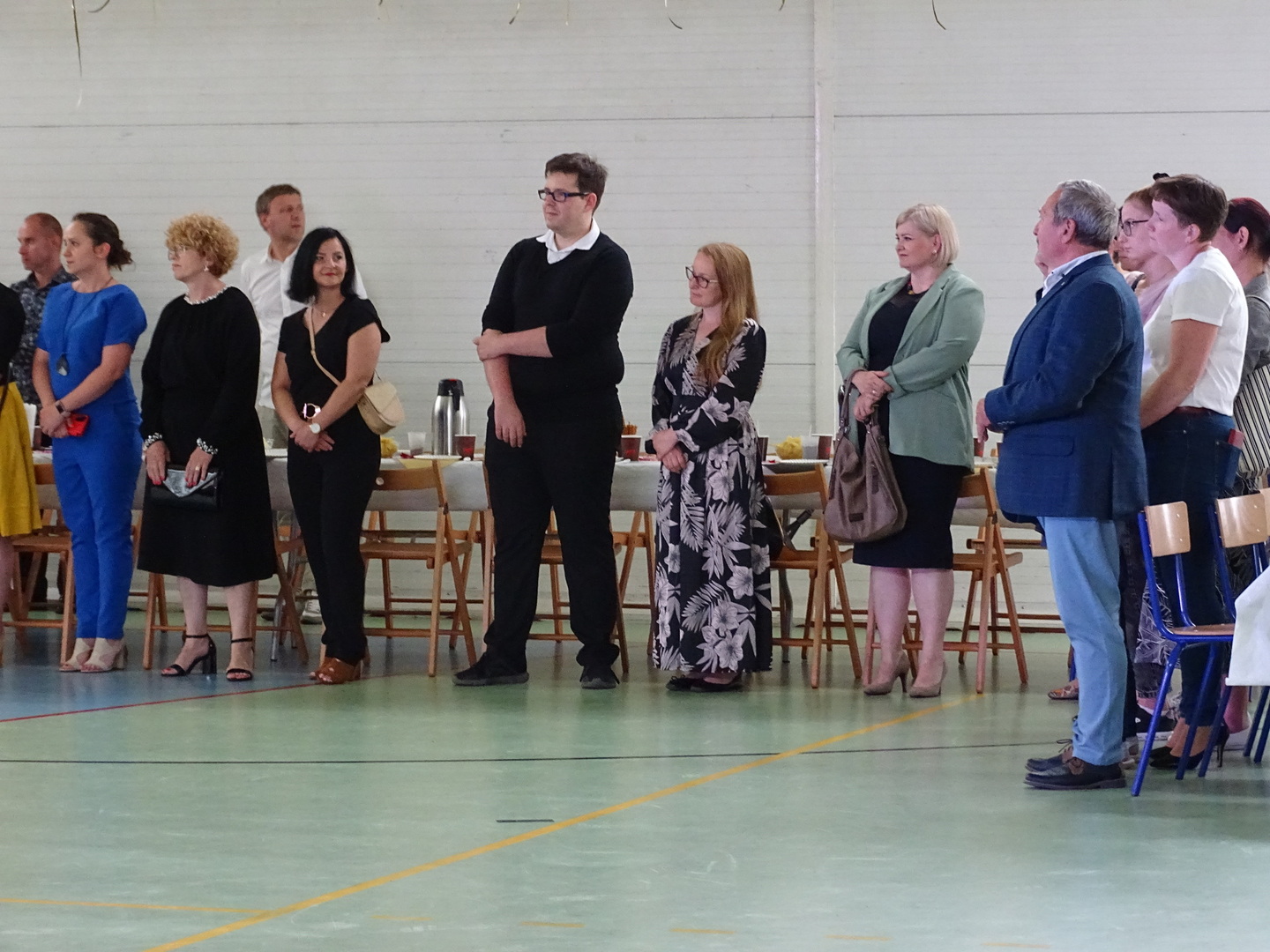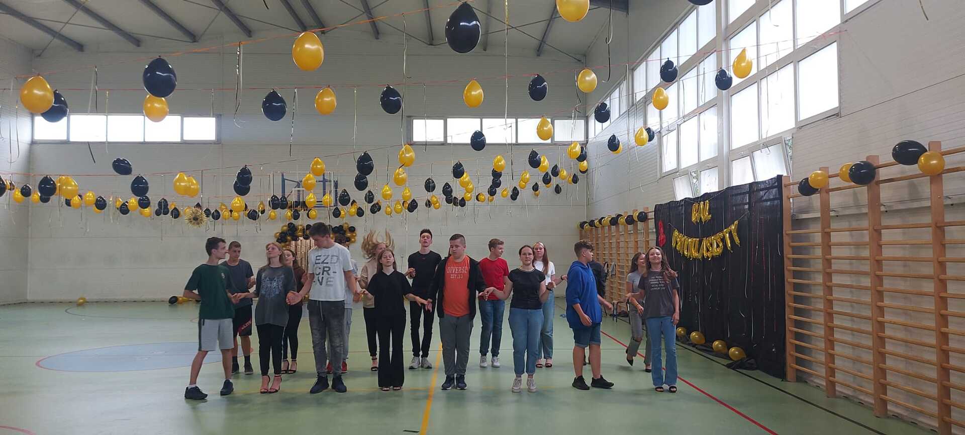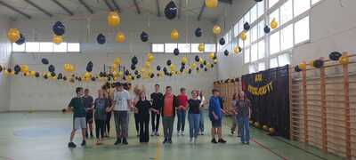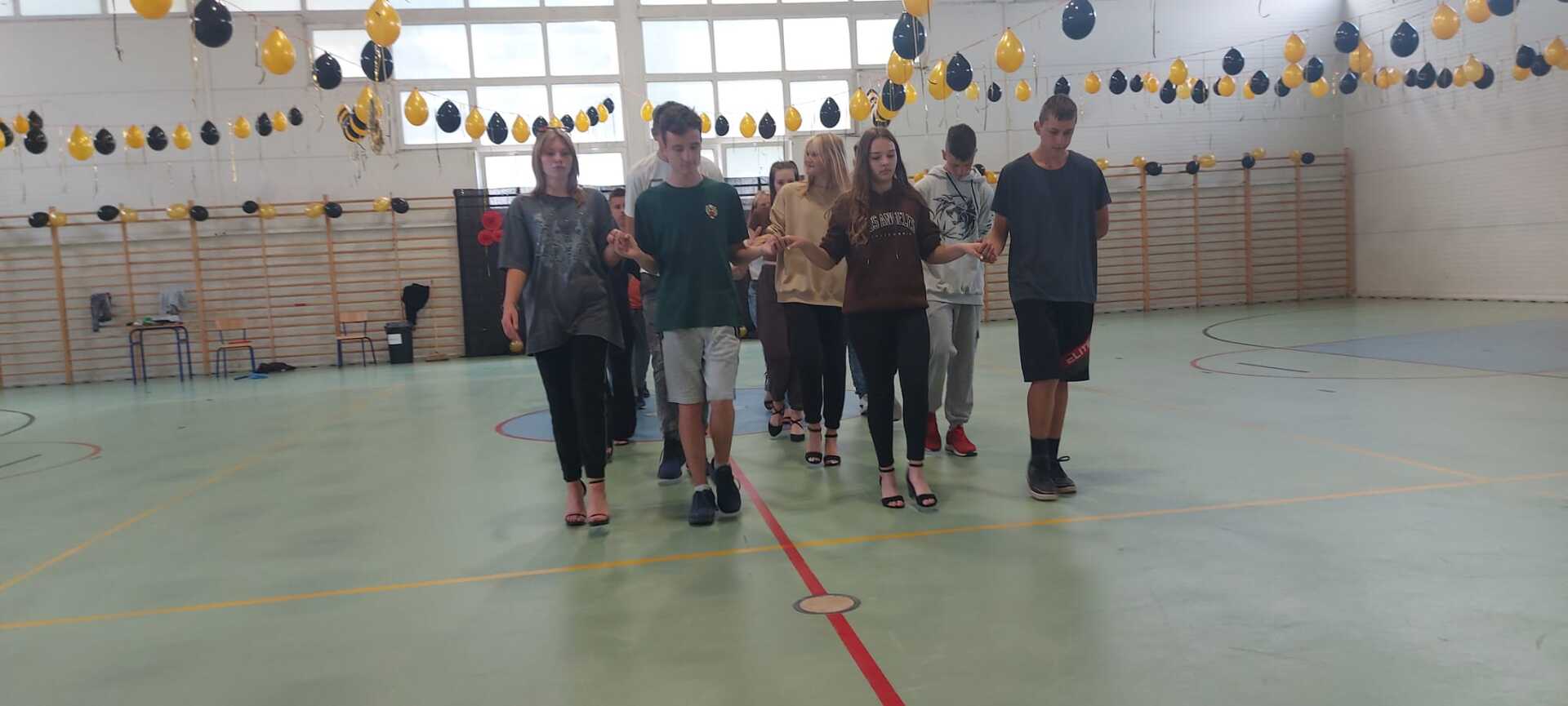 Na uroczystość Rodzice i Uczniowie zaprosili Panią dyrektor Beatę Kubacką, wychowawców: Izabelę Kędziorę, Hannę Sikorę i Annę Saleniuk oraz wszystkich Nauczycieli i Pracowników szkoły. Uczniowie w rytmie poloneza wprowadzili zaproszonych gości na aulę. Po przejściu do pięknie udekorowanej sali, Daria przewodnicząca Samorządu Uczniowskiego powiedziała w imieniu klasy 8: Przed nami procedury ubiegania się do szkół ponadpodstawowych, więc postanowiliśmy jeszcze raz pobawić się wspólnie i podziękować wszystkim, którzy towarzyszą nam na co dzień w szkolnej „wędrówce”.
