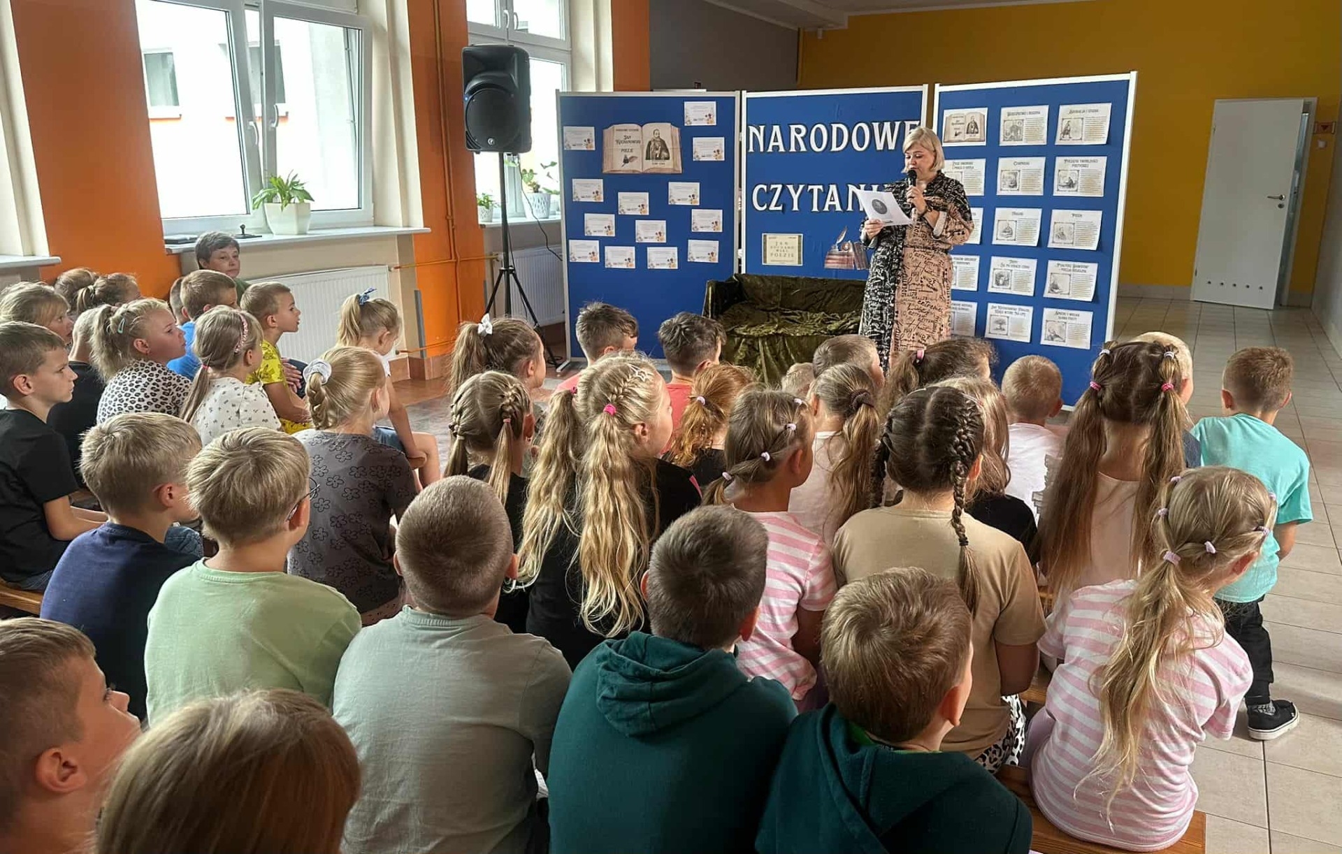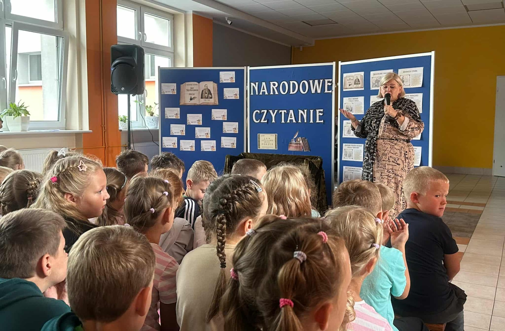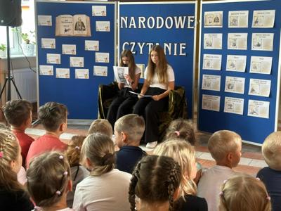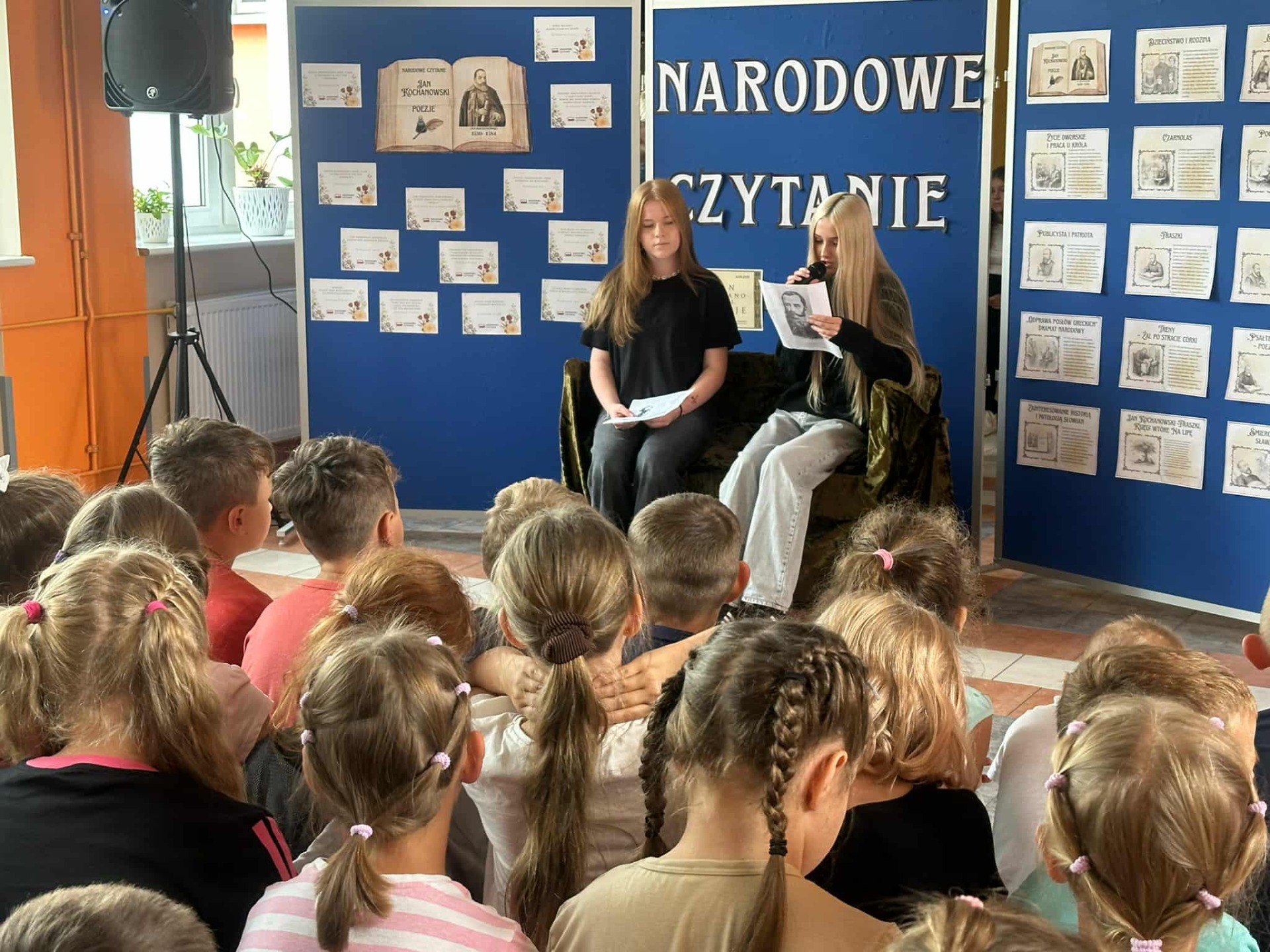 W poniedziałek w naszej szkole odbyło się Narodowe Czytanie poezji Jana Kochanowskiego. Utwory renesansowego poety zaprezentowali uczniowie klas VII i VIII oraz nauczyciele. Wszyscy z uwagą wysłuchali listu pary prezydenckiej oraz fraszek, pieśni i trenów Jana Kochanowskiego. Na koniec uczniowie otrzymali pamiątkową pieczęć do zeszytu.